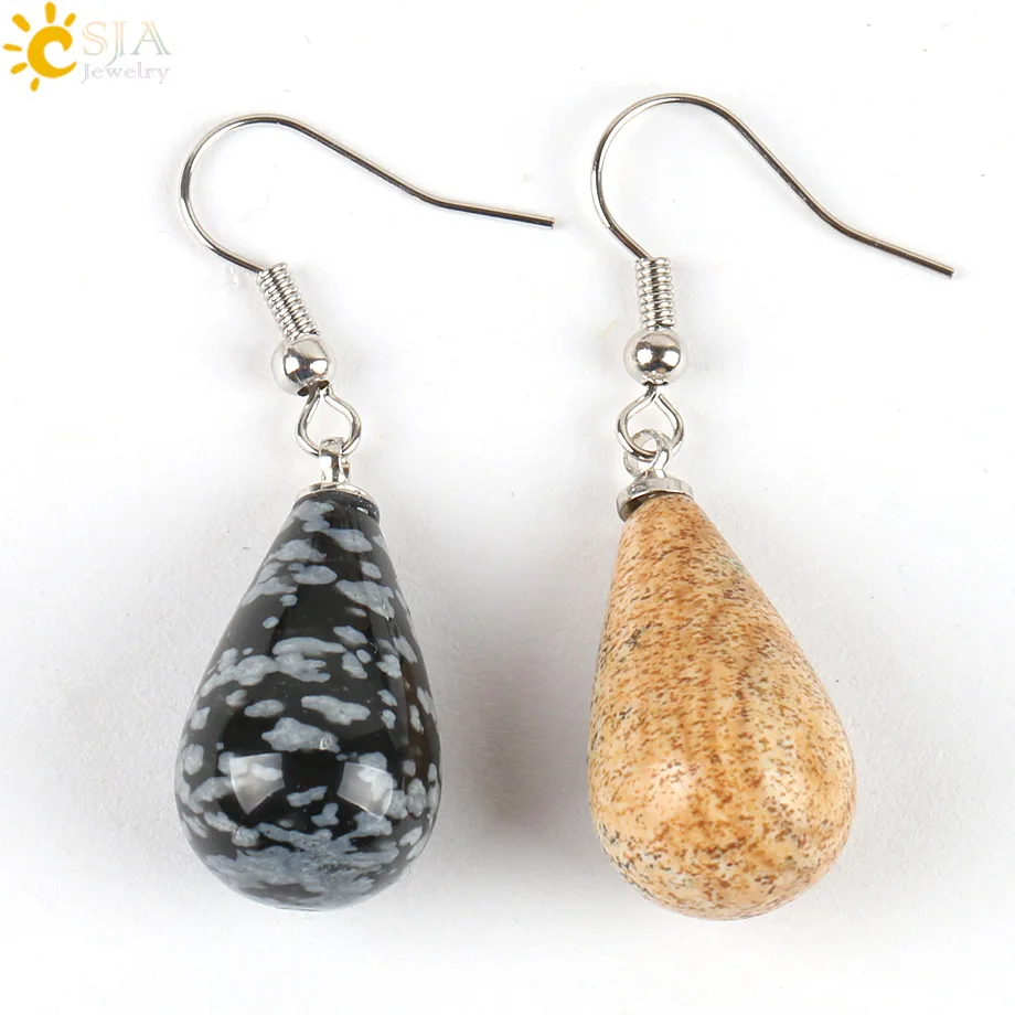 CSJA 16 цветов Классический слеза капли воды натуральный камень бусины кристалл кулон Висячие длинные женские серьги ювелирные украшения E108