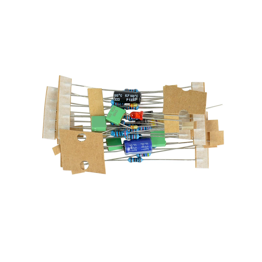 Конденсаторы плёнка по 10мК - Б/У - это понятно. Регулятор - то-же откуда-то выпаян - вот это непонятно. Остальное всё - новое. Некоторые элементы слегка помяты (некритично).