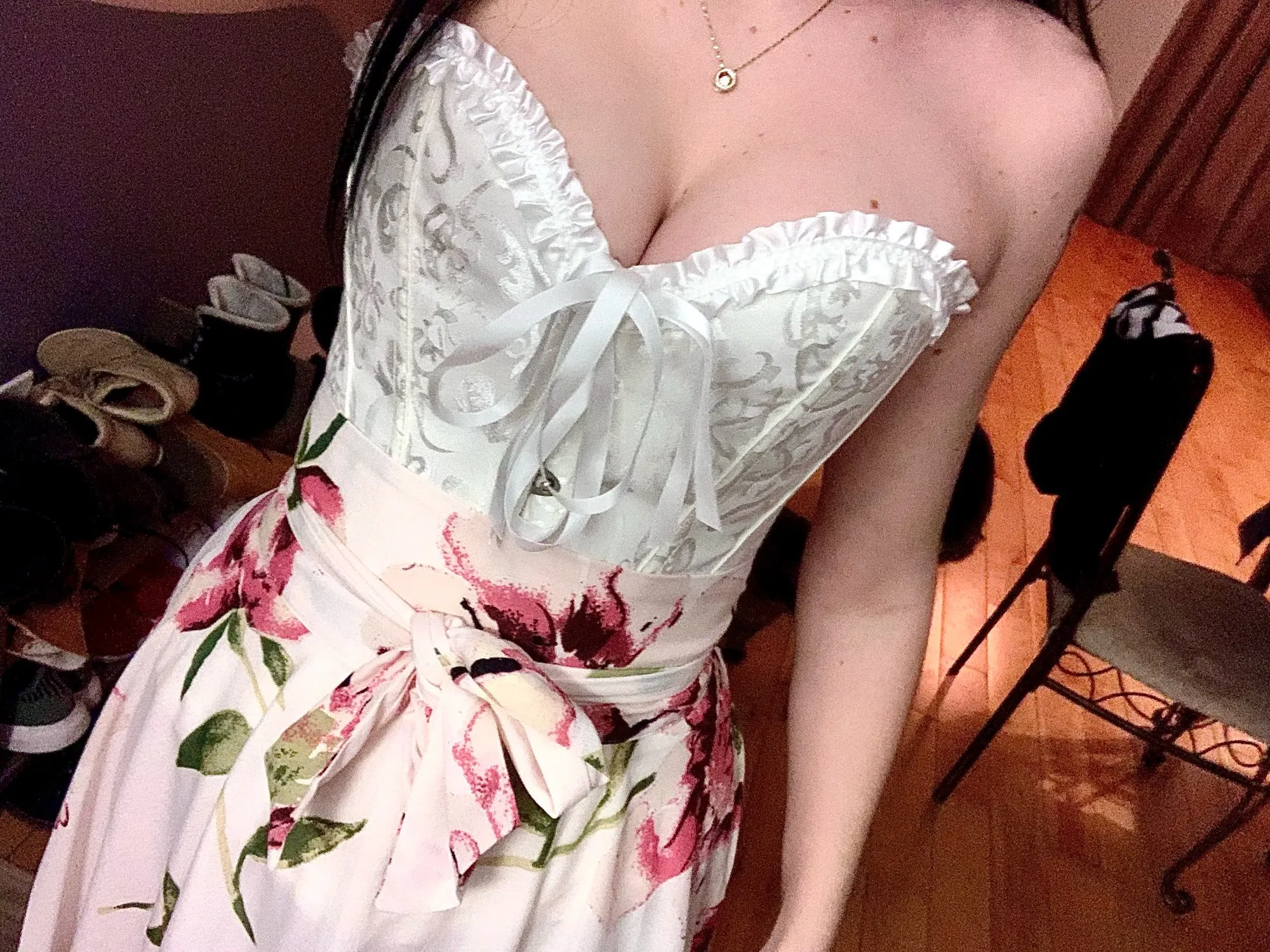 Абсолютно великолепный корсет. Только вещь, размер немного отличается. Если вы не хотите, чтобы ваш корсет Полностью закрылся на спине, я бы порекомендовал получить размер вниз от размера, указанного в описании. Я получил размер, который сказал, что должен получить и утонуть в корсете lol. Кроме того, если вы думаете о получении этого корсета, Вам обязательно следует. Это так красиво!