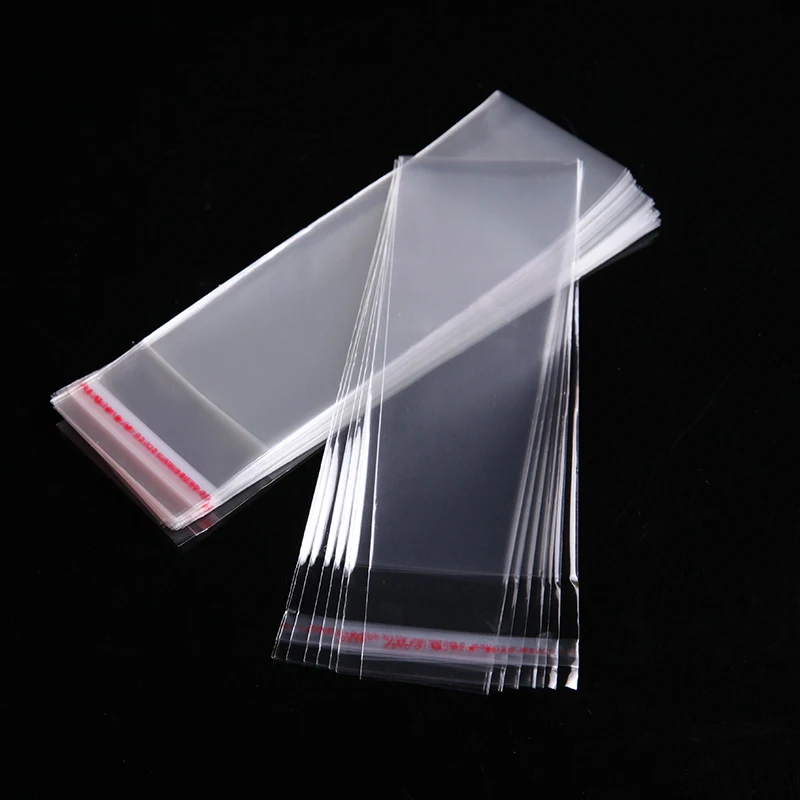 100 шт 8x25 см прозрачный целлофановый мешок самоклеящаяся печать прозрачный герметичный Poy пластиковые ювелирные изделия Упаковочные пакеты