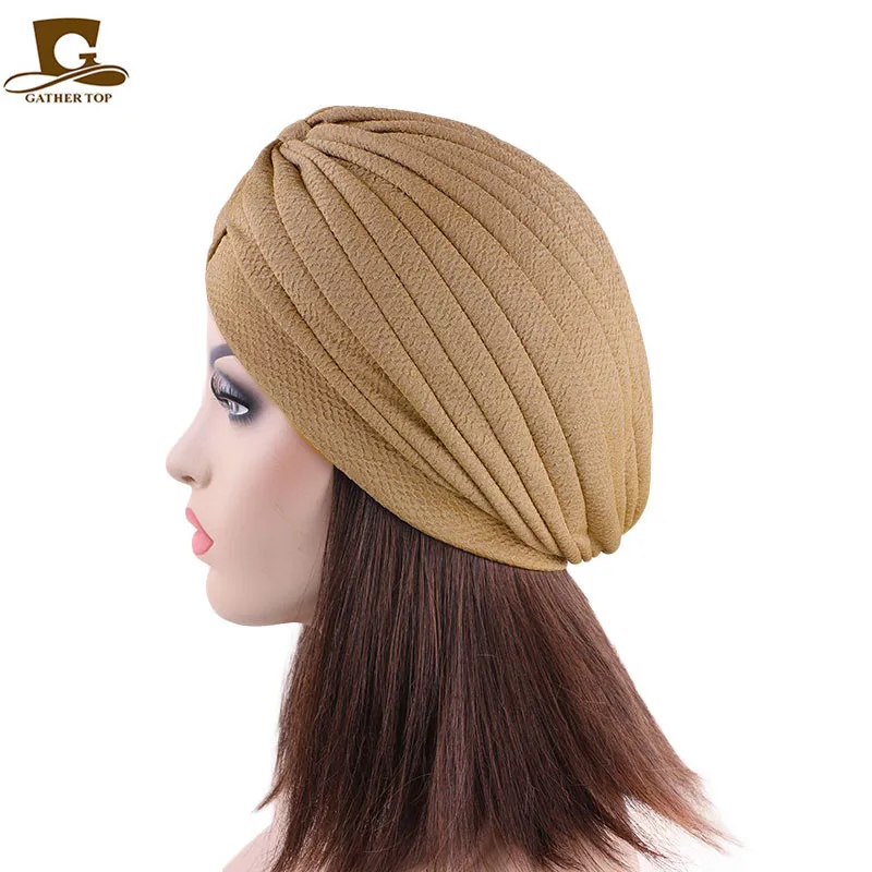 Однотонный мусульманский тюрбан для женщин, повязка на голову, повязка на голову, Женская мятая Повседневная повязка на голову, головной убор, аксессуары для волос