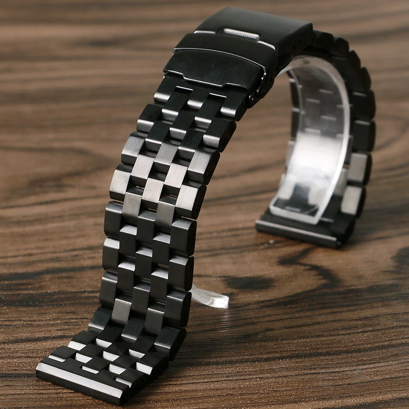 2022 мм Нержавеющаясталь ремешок сереброчерный браслет Твердые Ссылки застежка с безопасностью для Для женщин Для мужчин наручные часы