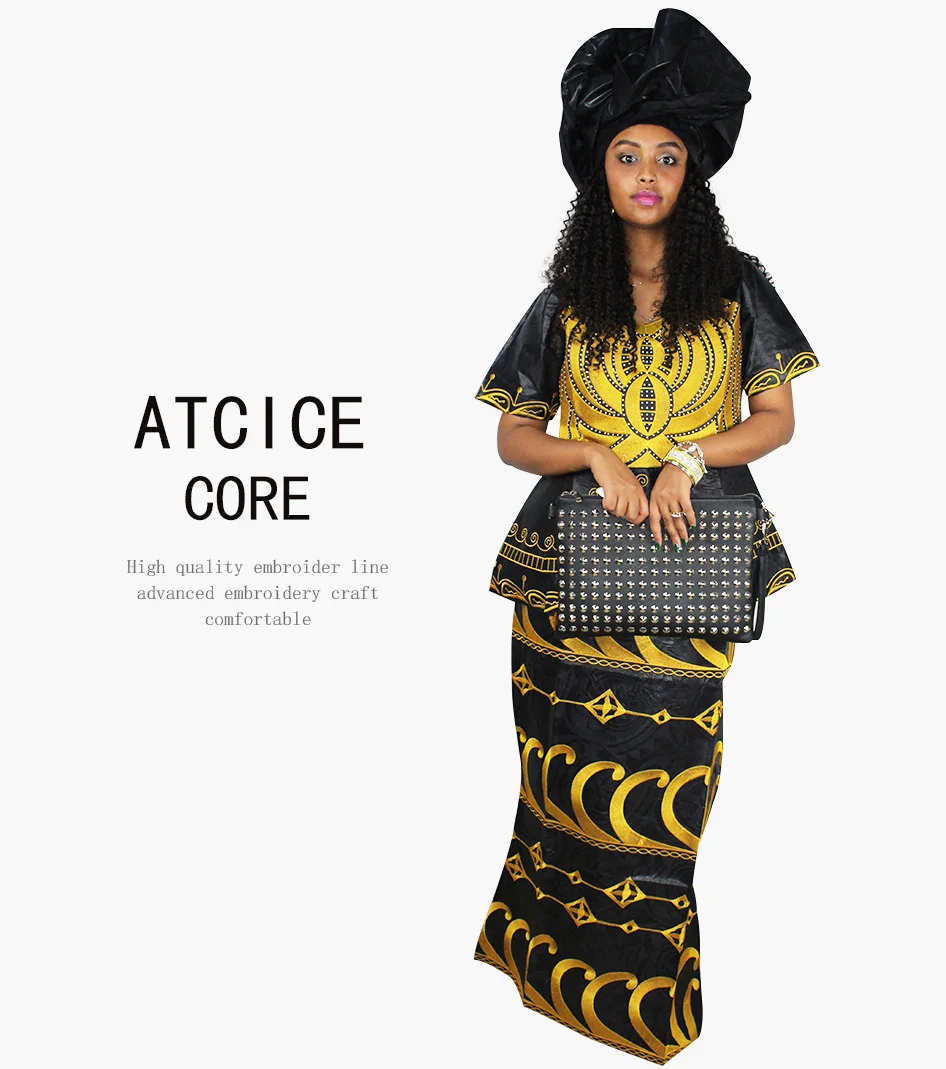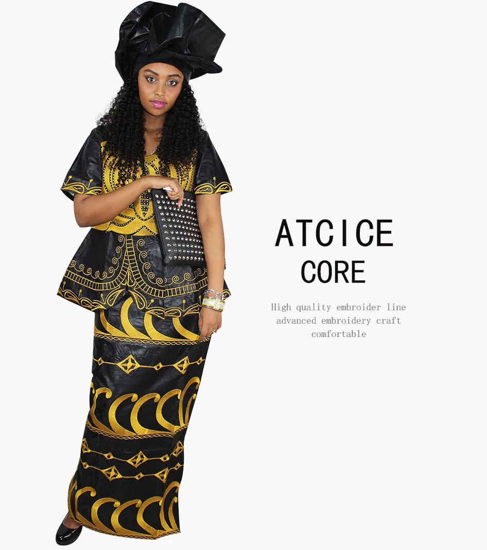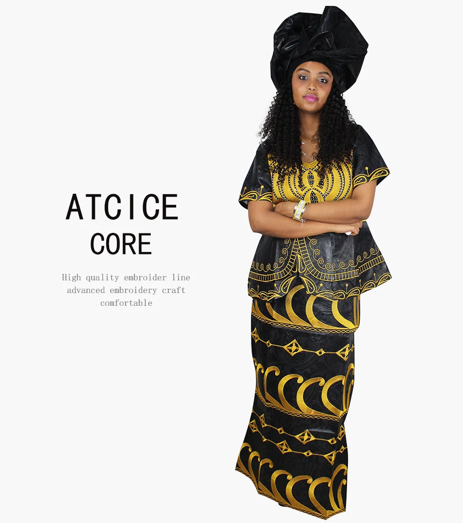 Африканские платья с вышивкой Bazin, новый дизайн, короткий рэпер с шарфом, три штуки, один комплект DP11