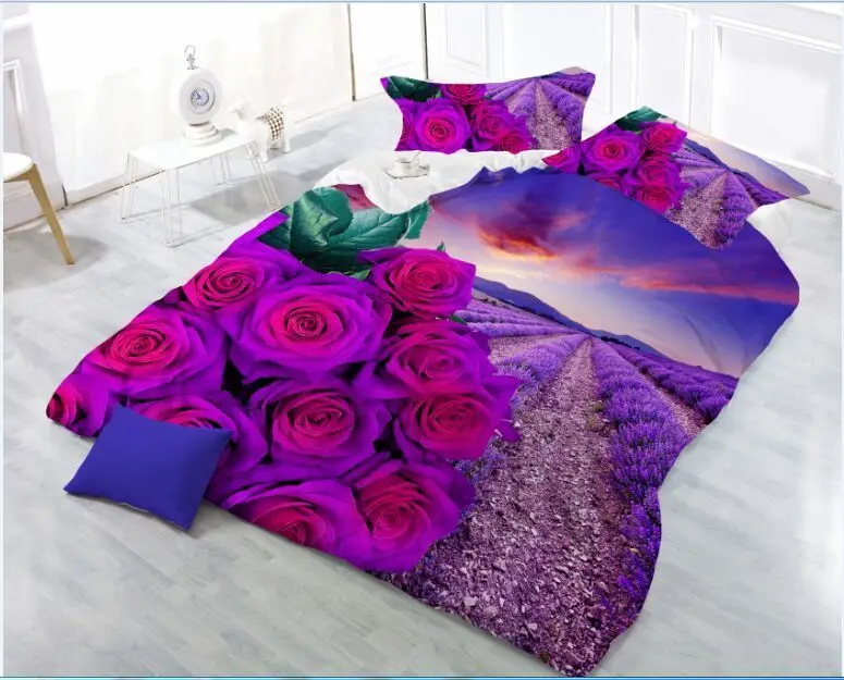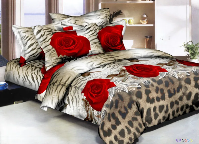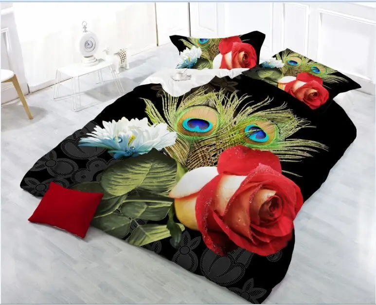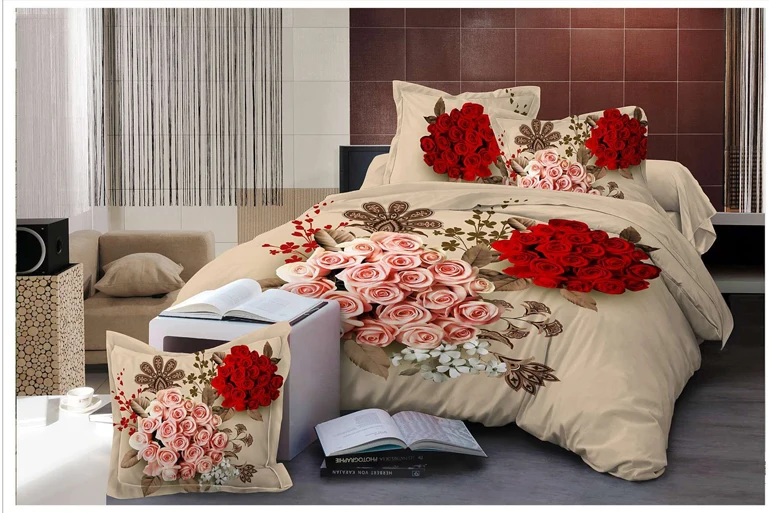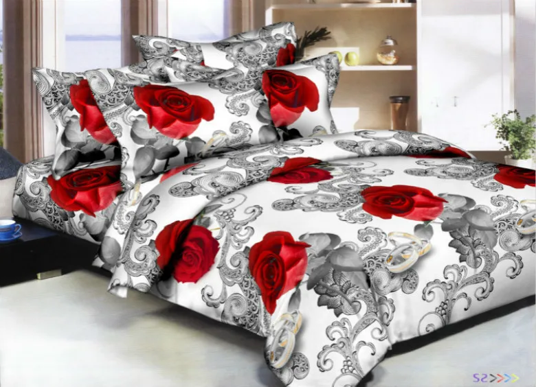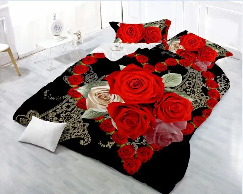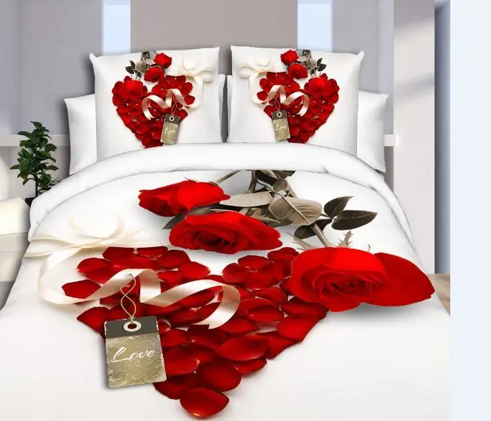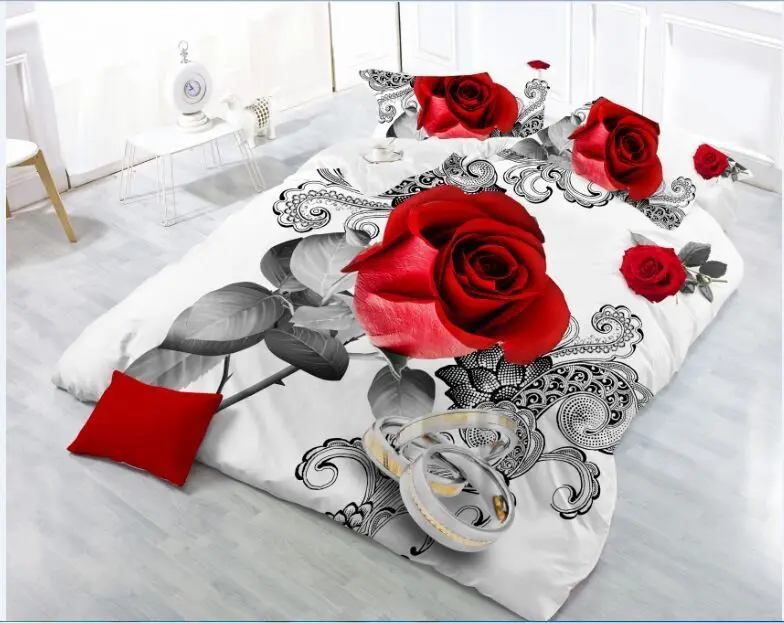 Комплект постельного белья с 3D рисунком красной розы, постельное белье с цветами, двуспальная простыня, пододеяльник, пододеяльник, наволочка, 4 шт.компл., домашний текстиль