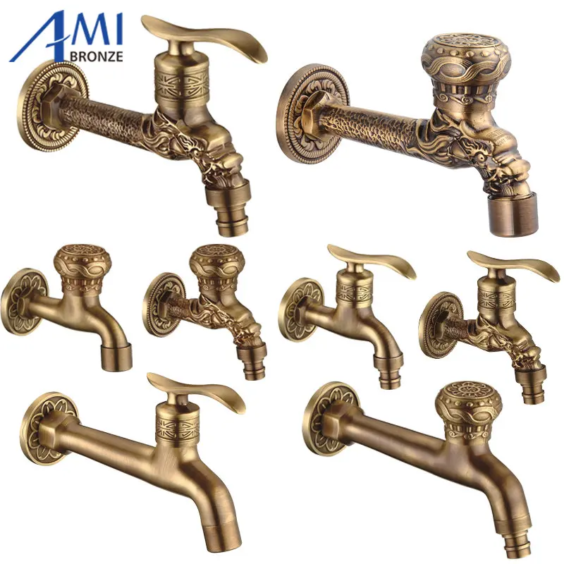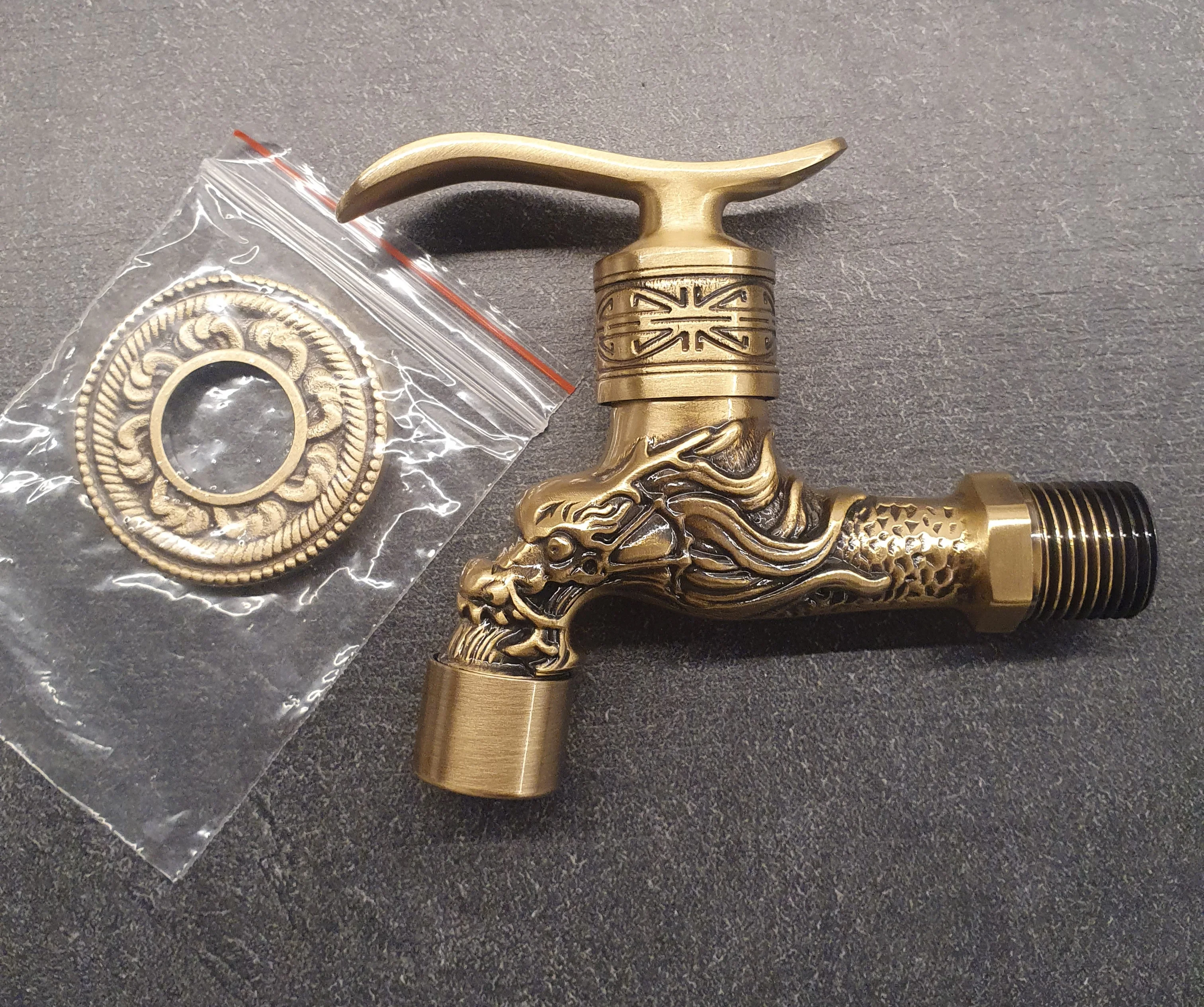 Смеситель для стиральной машины, латунный, под старину, с резным драконом, для сада, 1015CA
