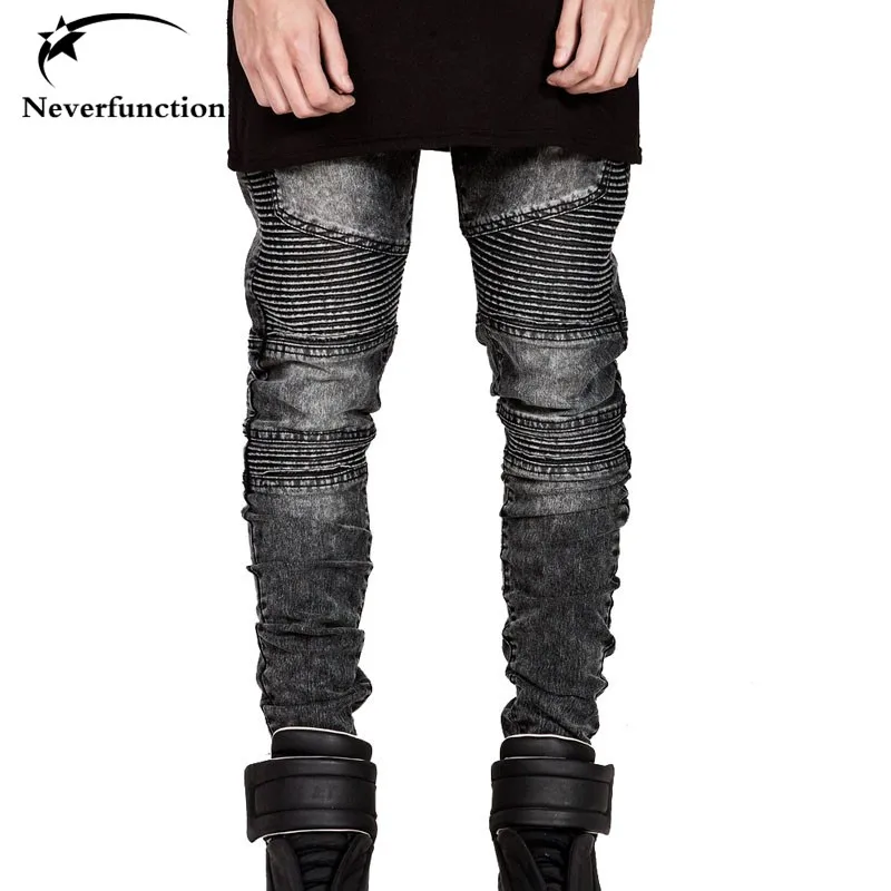Джинсы мужские скинни в байкерском стиле, рваные брюки из денима в стиле Хай-стрит, модельные зауженные брюки из денима с вареным эффектом, джоггеры, 2016