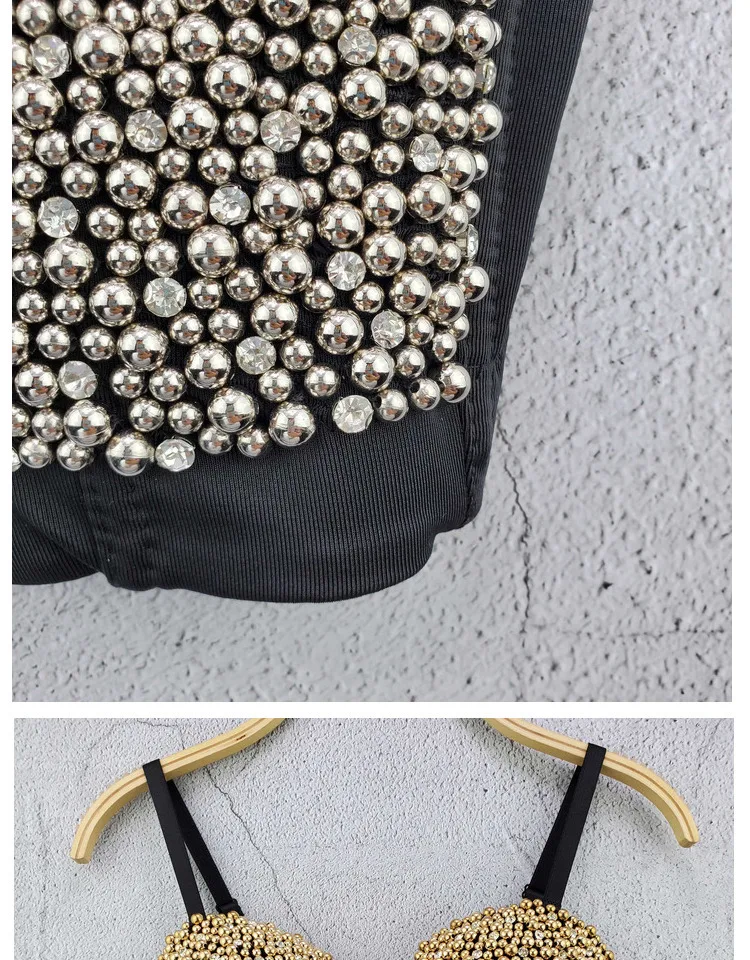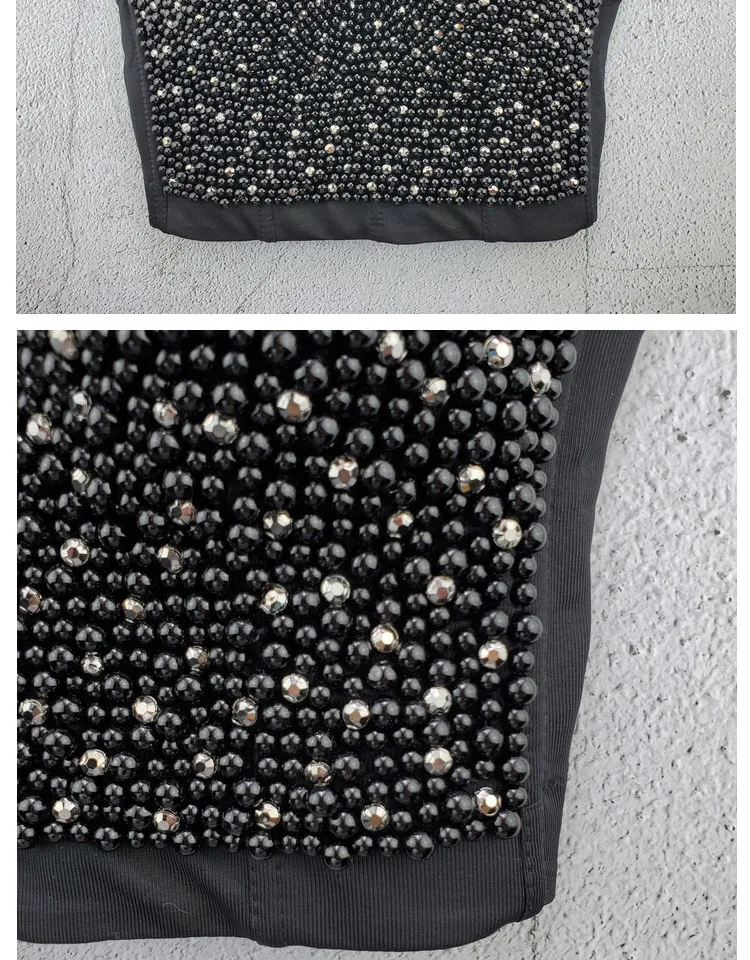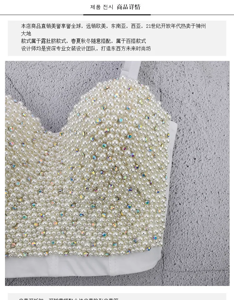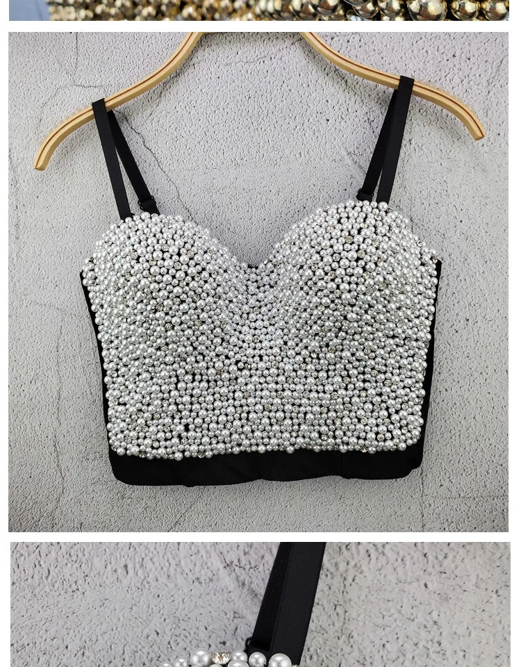 Укороченный топ с черным жемчугом сексуальное бюстье со стразами же...