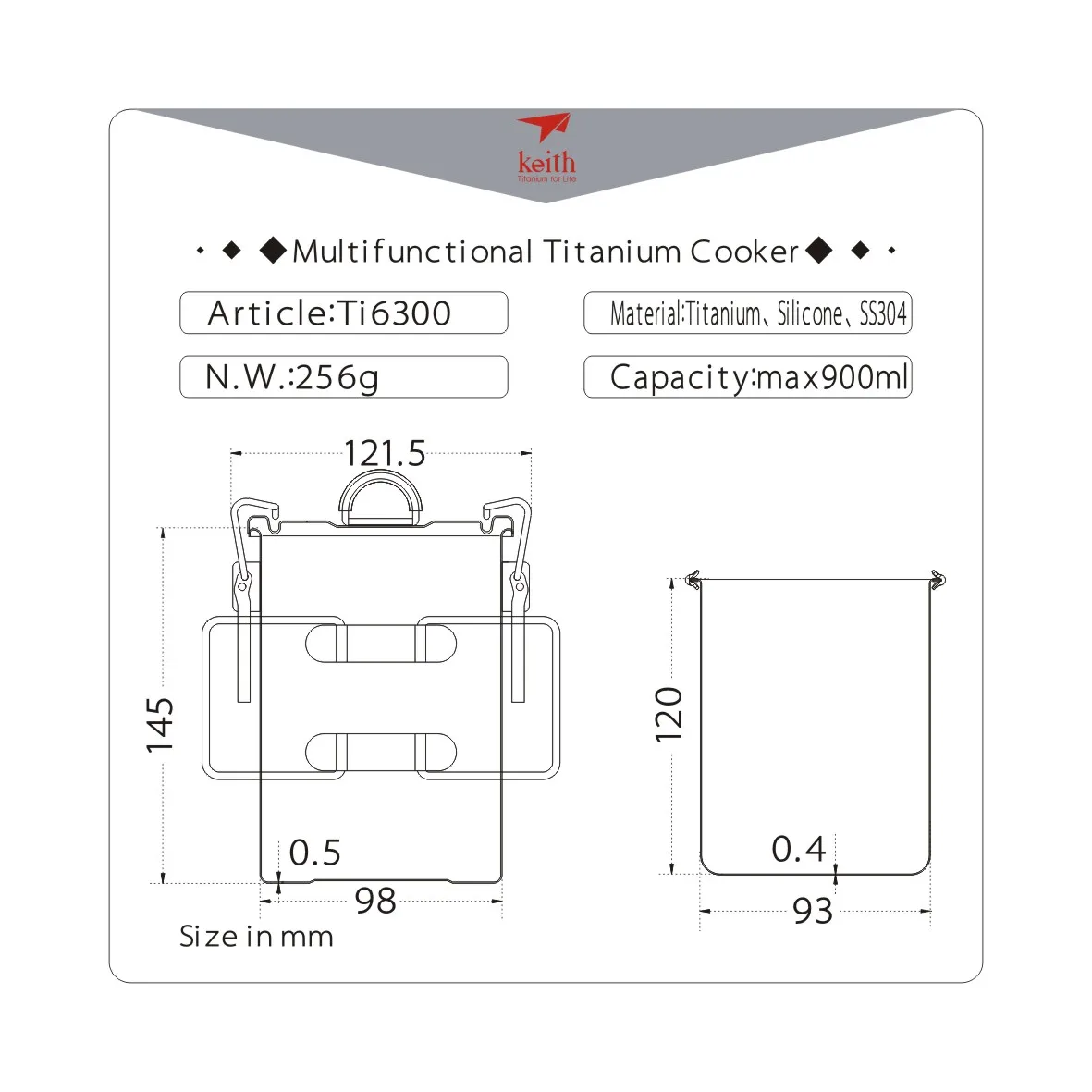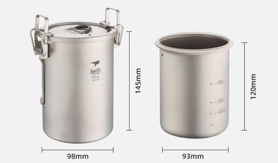 Набор многофункциональных титановых кастрюль Keith Ti6300 светильник, для кемпинга, рисоварка со складной ручкой