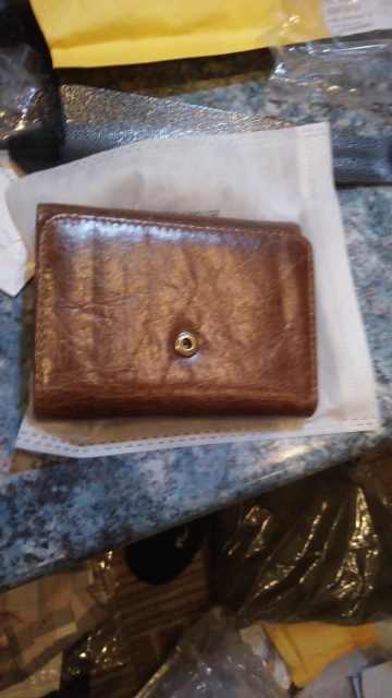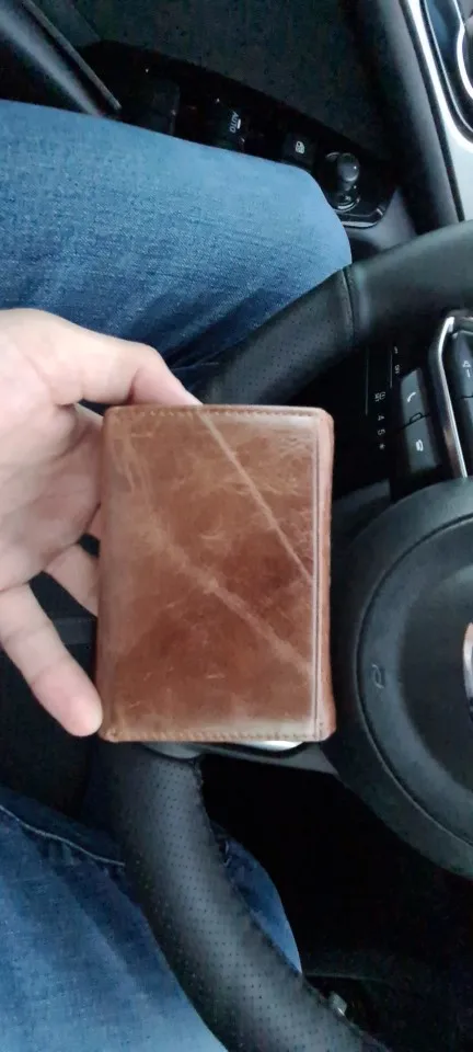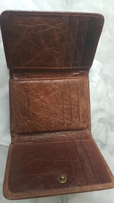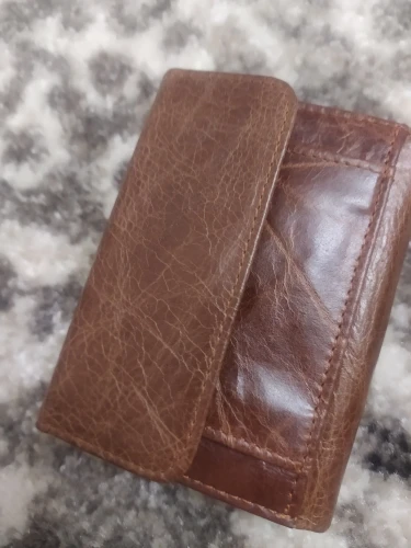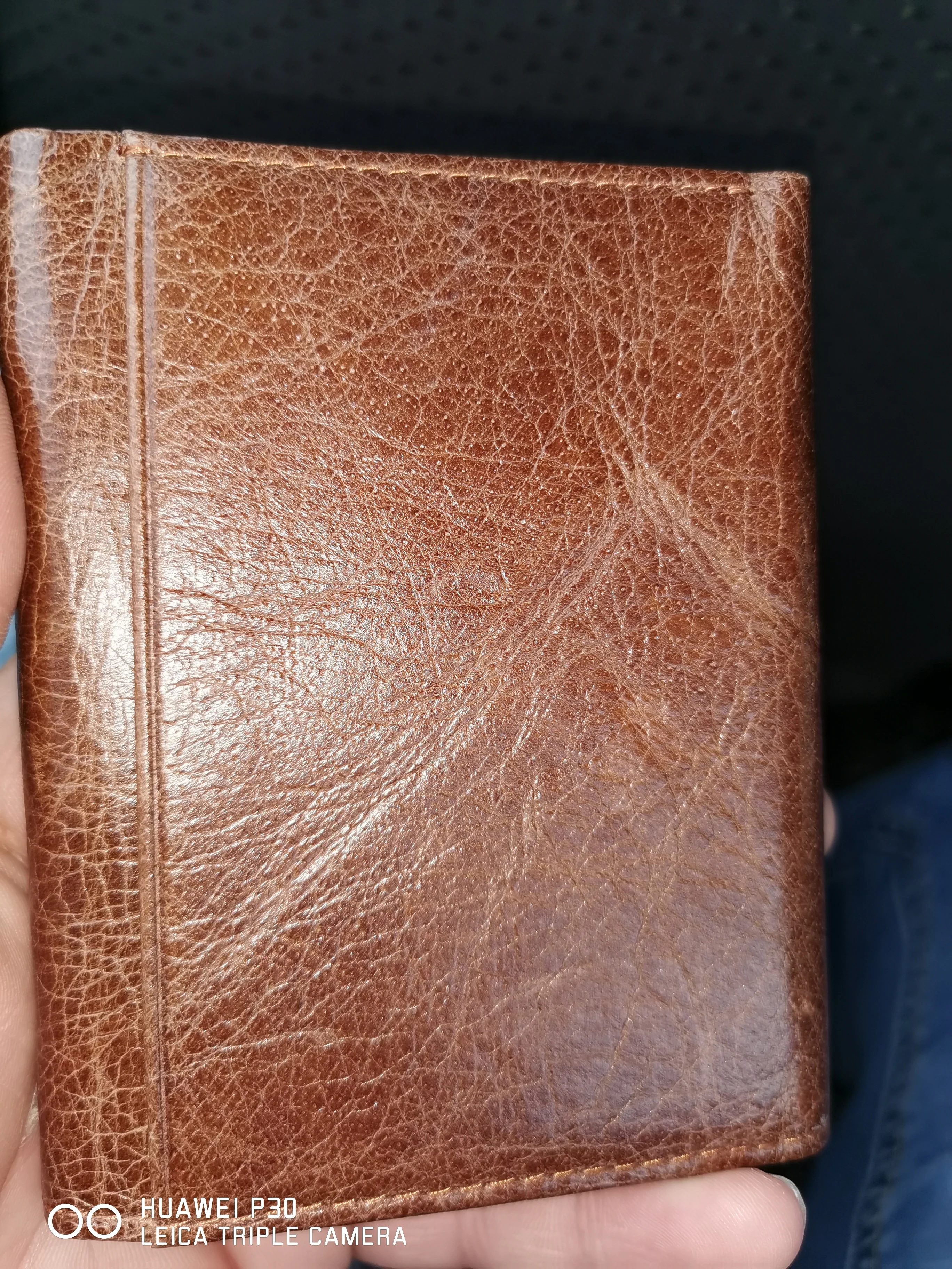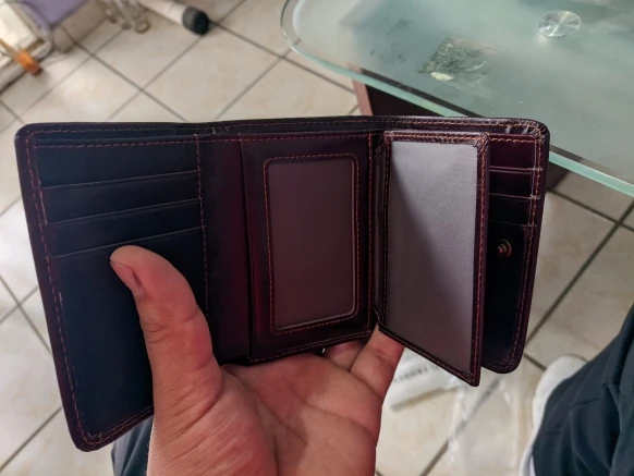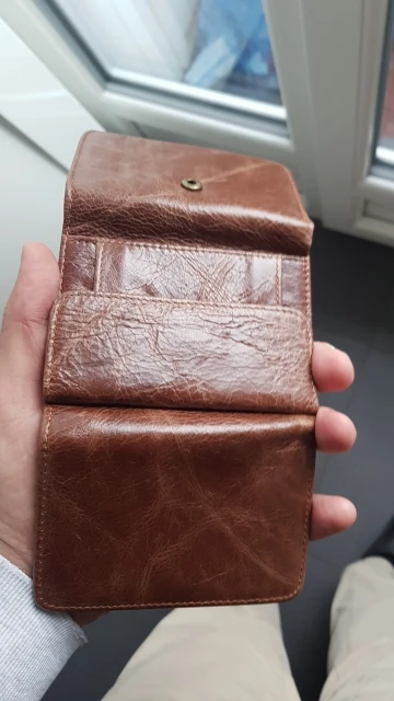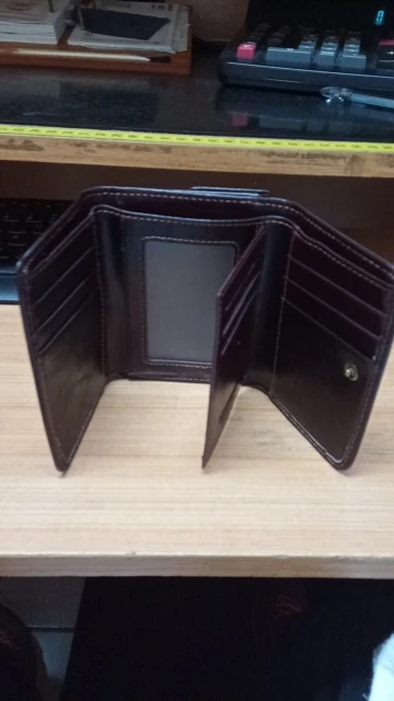 Хороший кошелек, с запахом натуральной кожи, пространство для монет немного меньше, он не легко царапается, и он имеет много места для карт и места для фото, до сих пор все хорошо, только один, но, внутренняя ткань кажется хрупкой. Но он не был сломан или поврежден, 2 недели использования