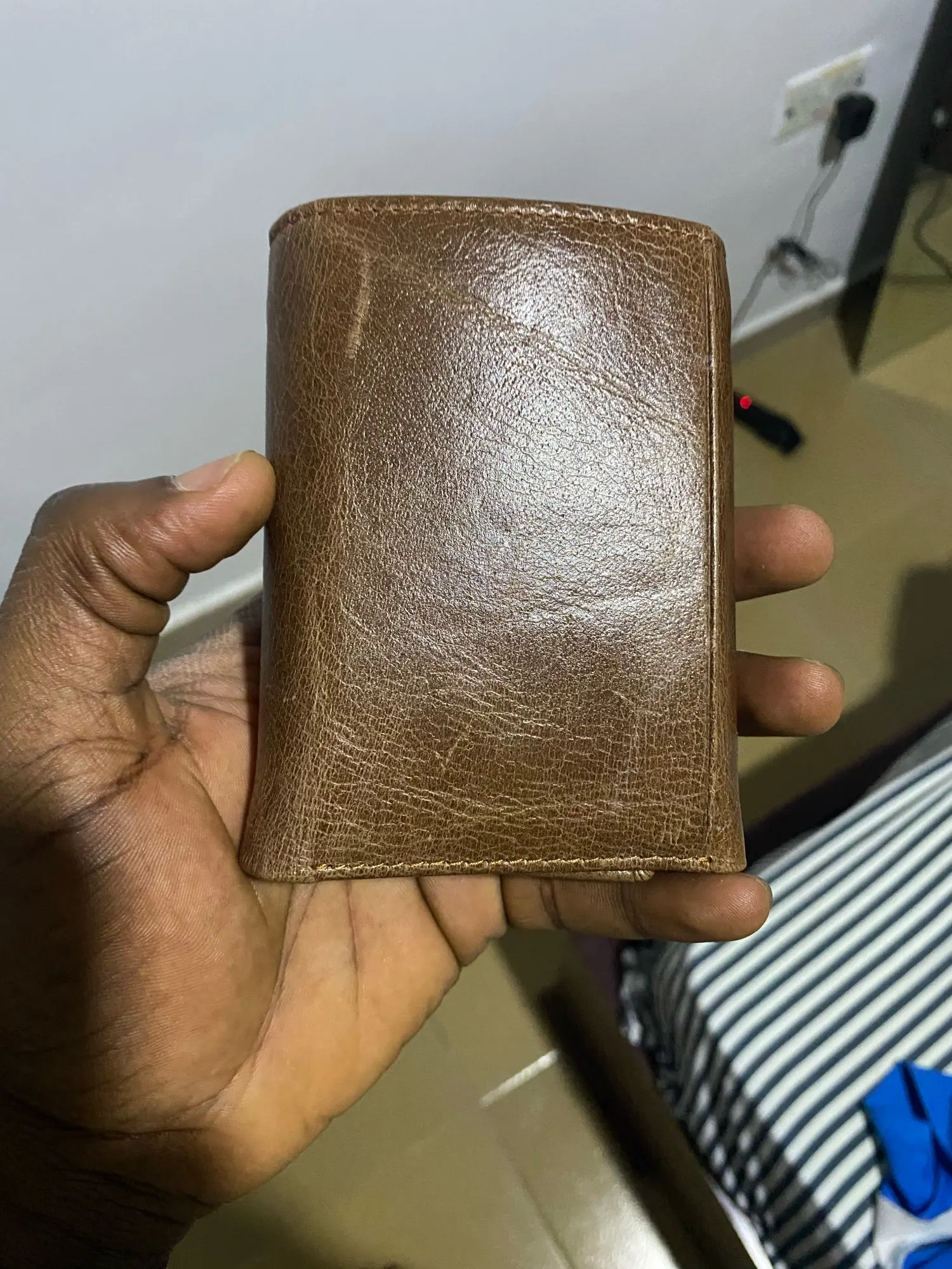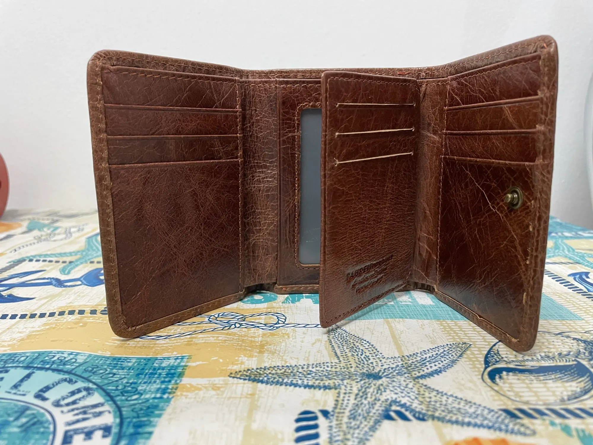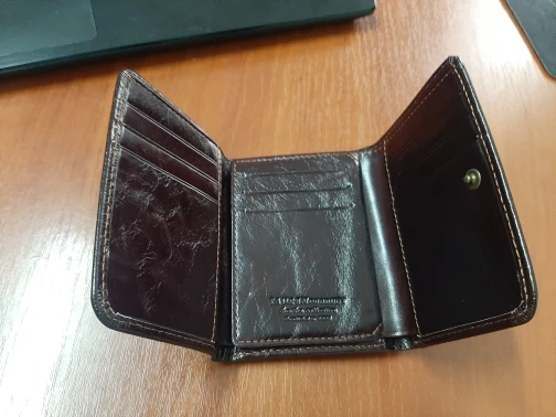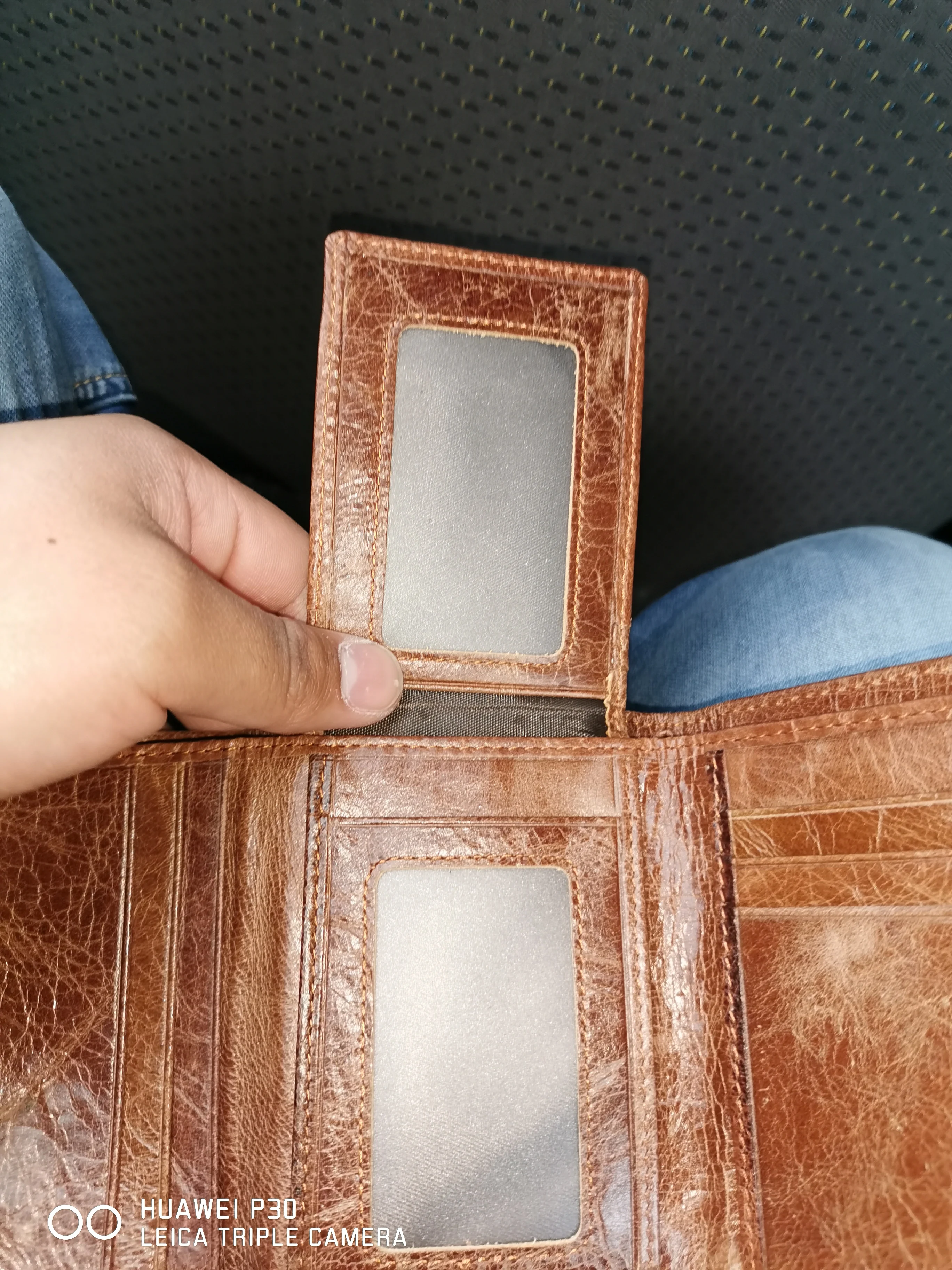 Хороший кошелек, с запахом натуральной кожи, пространство для монет немного меньше, он не легко царапается, и он имеет много места для карт и места для фото, до сих пор все хорошо, только один, но, внутренняя ткань кажется хрупкой. Но он не был сломан или поврежден, 2 недели использования