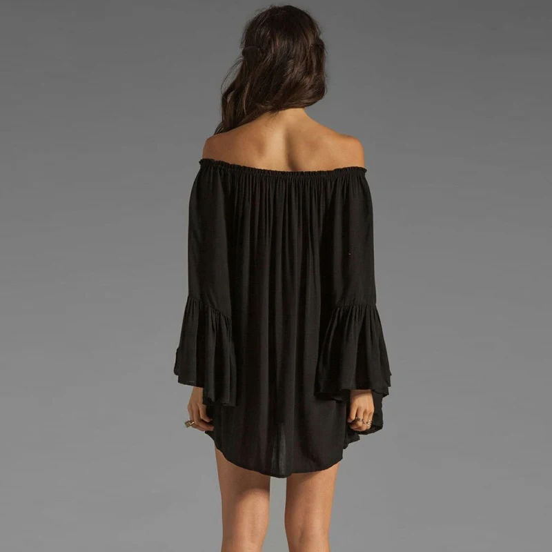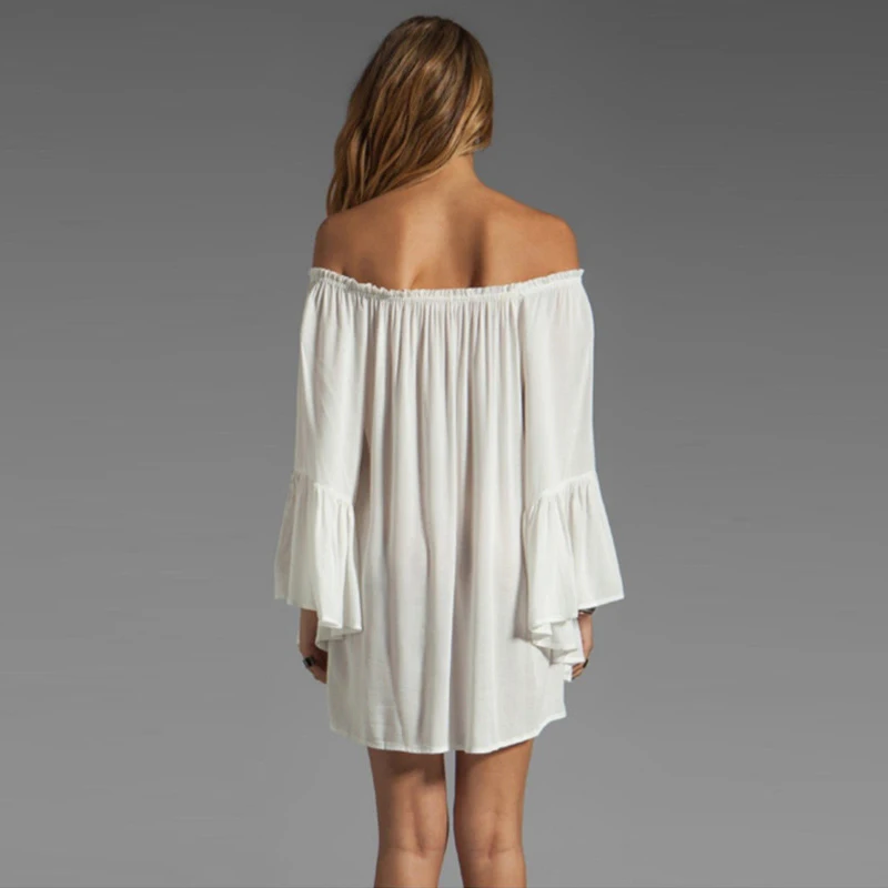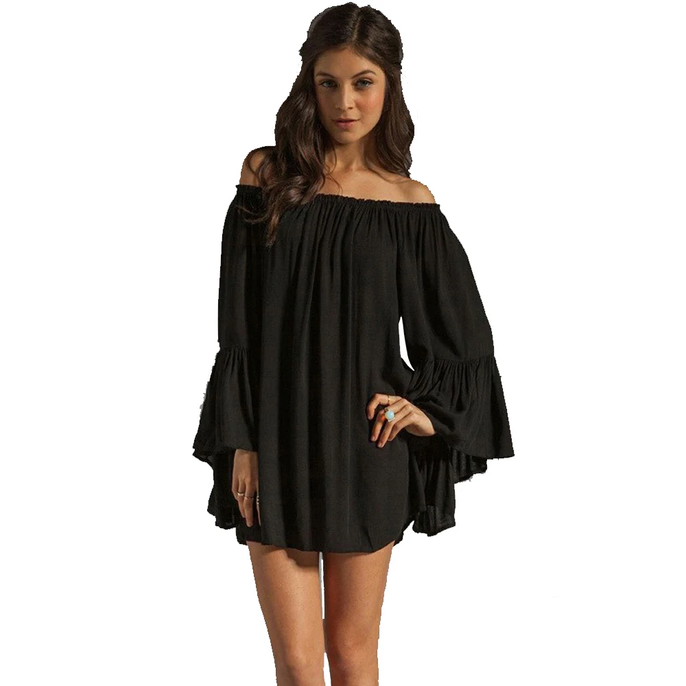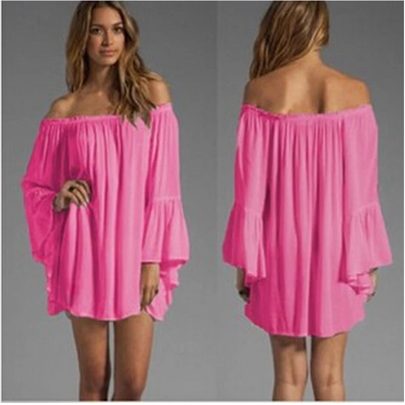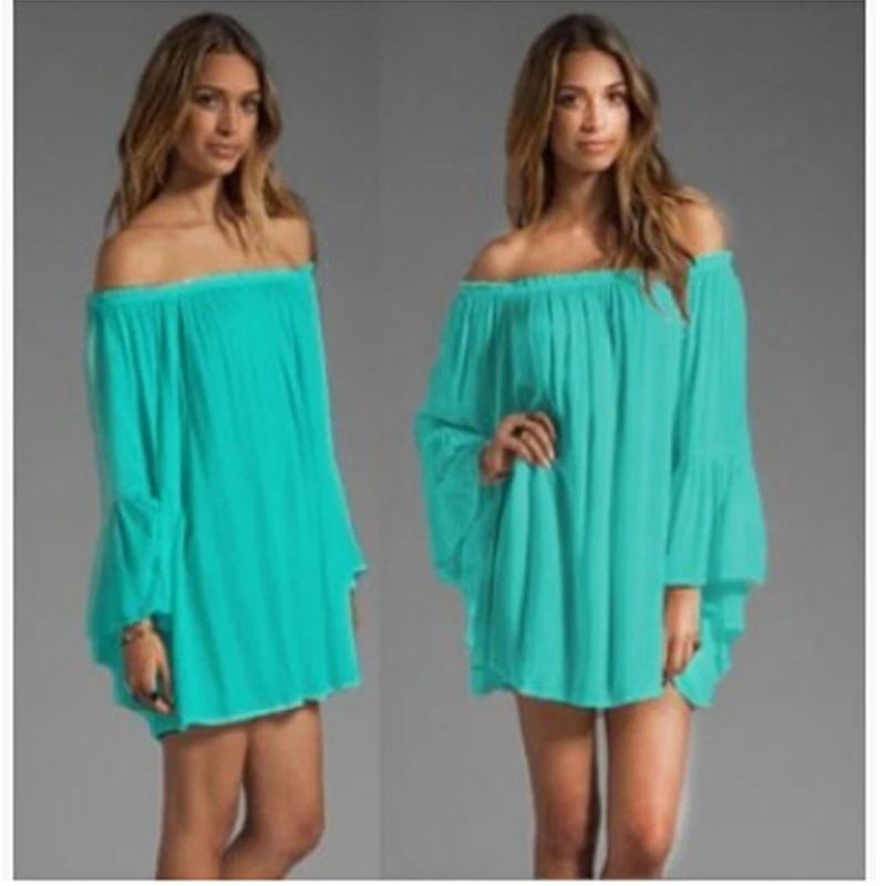 Сексуальное женское шифоновое мини-платье с открытыми плечами, с вырезом-лодочкой, плиссированное, с длинным рукавом, свободное пляжное платье FS0238 icon star icon star icon star icon star icon star
