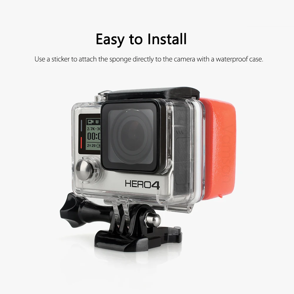 С наклейкой прикрепить губку непосредственно к водонепроницаемой коробке GoPro (не входит в комплект).