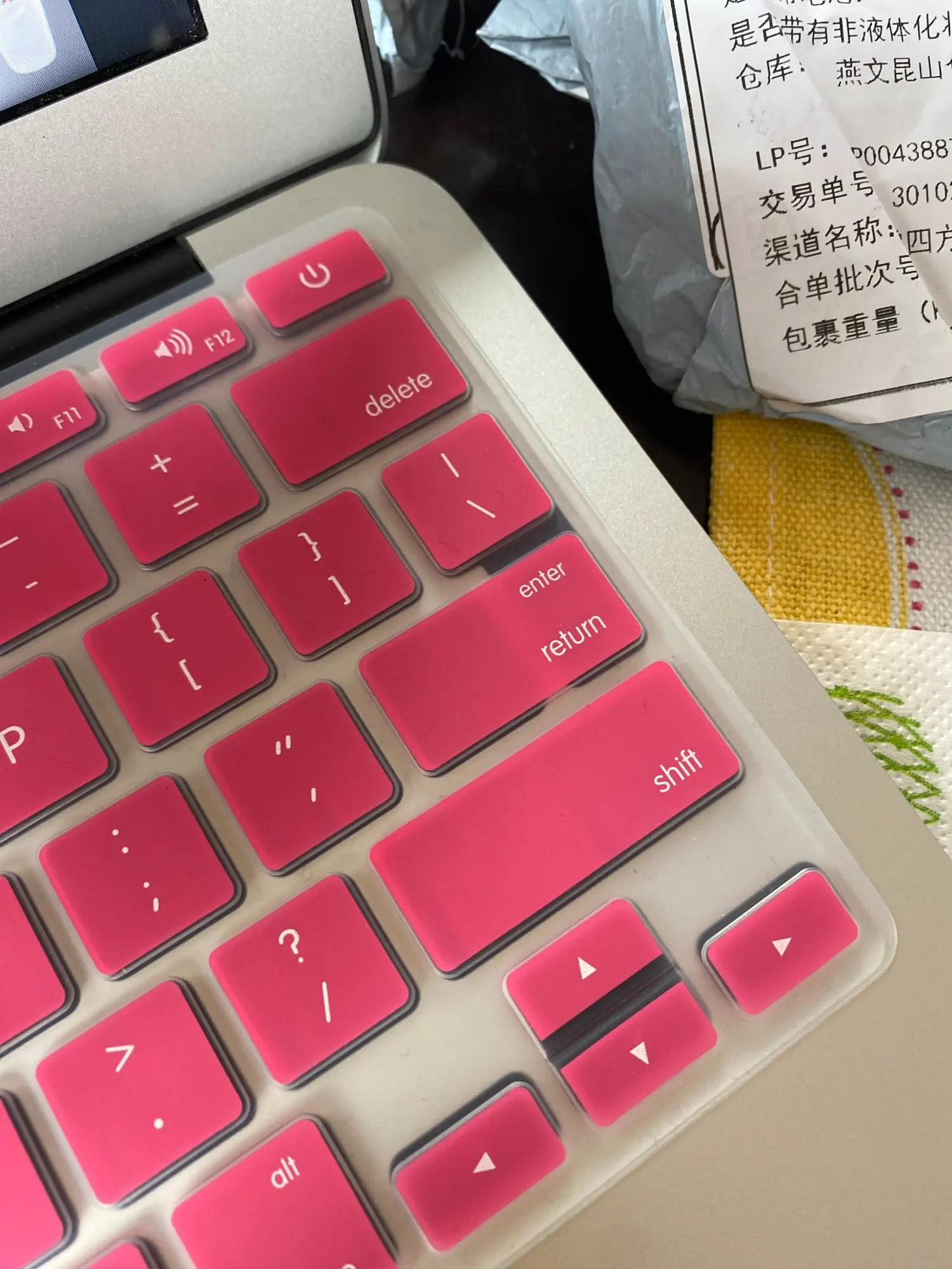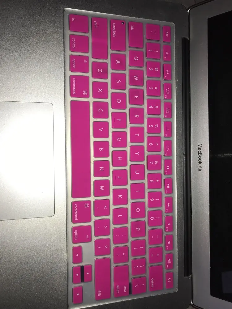 Чехол идеально подходит для моей клавиатуры. Все кнопки такие же, как у моей клавиатуры, и цвет очень красивый, ярко-розовый. Крышка прибыла немного сложена, но не видно большого типа повреждений.