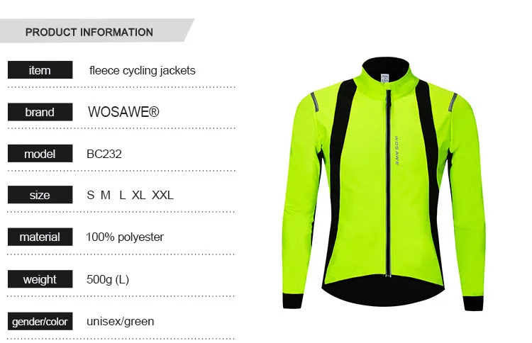 Применимо:Подходит для долгой и короткой езды, ночной езды, легкой езды по пересеченной местности и короткой дистанции езды на велосипеде. А также другие виды активного отдыха.Дизайн и крой: Изготовлен из теплого флиса с растягивающимся ветростойким материалом. Это отличный вариант, чтобы держать Ваш теплый, 3D и бесшовный крой, чтобы уменьшить обрезку тела, более удобный и фитнес.Материал:Ветрозащитная и высокоэластичная, дышащая и легкая, Упаковочная защита от холода и ветра, только то, что вам нужно, и больше нет.Высокий воротник:Дизайн с высоким воротником, эффективно защищает от ветра.3 кармана:Классический 3 кармана сзади, легко держать предметы.Светоотражающая полоса: Светоотражающая полоса сзади для обеспечения безопасности ночной езды.Силиконовый подол:WOSAWE логотип силиконовый ремешок, может продлить аллергию на кожу и ткань очень хорошо скользит во время езды.Светоотражающая молния: WOSAWE индивидуальные Светоотражающие молнии, прошли тысячи раз тест на трещину и застревают во время езды.Печать и чернила:Сублимационная технология печати, используйте высококачественные чернила, экологичные и никогда не выцветают.