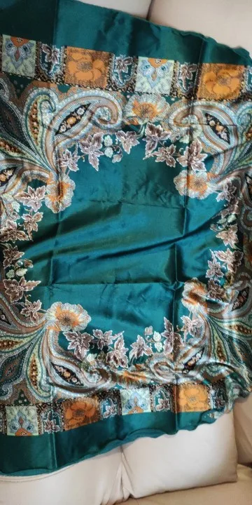 Спасибо продавцу за быструю доставку. Товар описан точно, цвет насыщенный, яркий, материал нежный. Смотрится красиво, если бы сантиметров на 10 длиннее, было бы очень хорошо и удобней. Размер на 52-54 подходит хорошо.