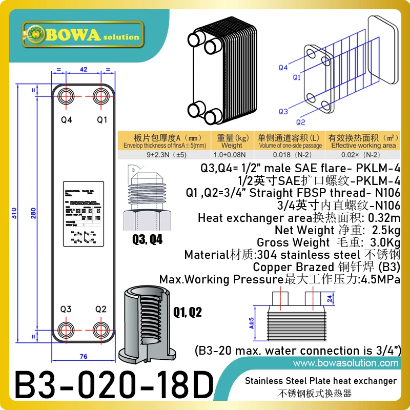 3.5 кВт пластины из нержавеющей стали теплообменники (испаритель и ...