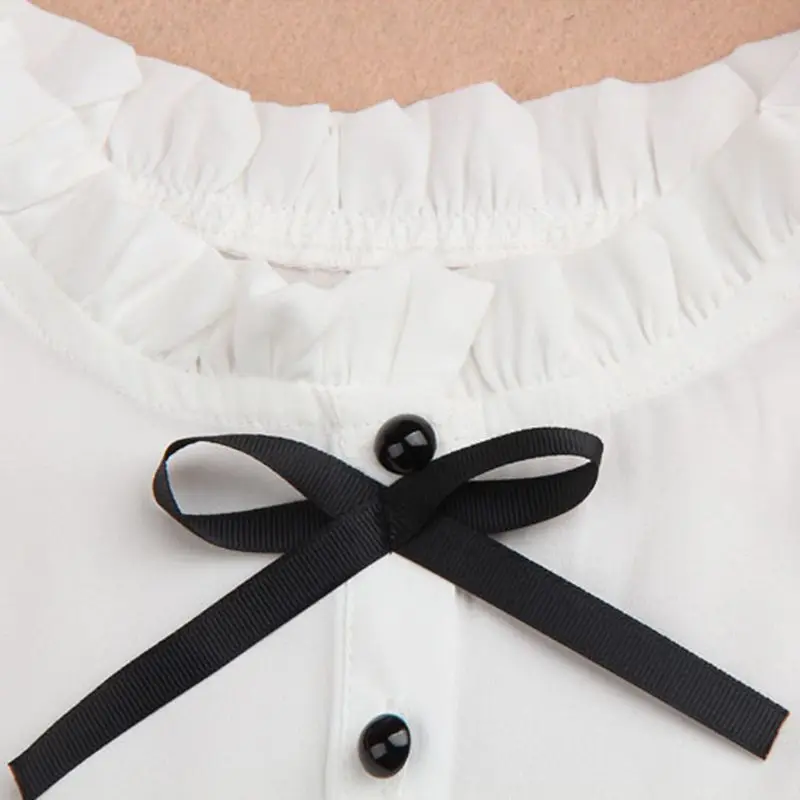 Новинка 2017 года, летние белые шифоновые топы и блузки для девочек школьная блузка с короткими рукавами и бантом для девочек-подростков детская рубашка JW1785