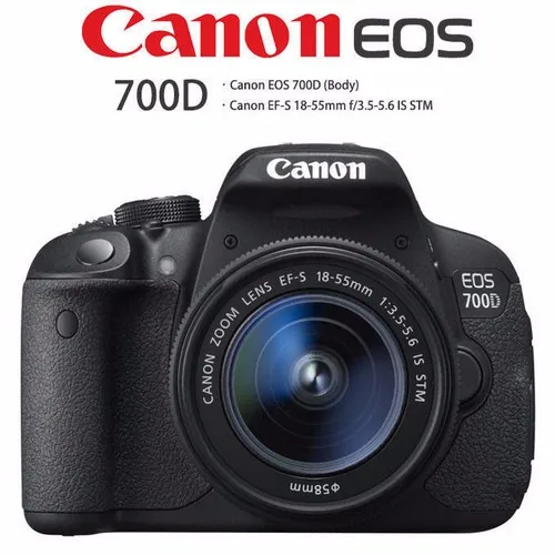 Камера Canon700D/Rebel T5i DSLRЭто цифровая зеркальная камера формата APS-C с датчиком CMOS 18 МП и процессором изображения DIGIC 5. Он сочетается с объективом EF-S 18-55 мм f/3,5-5,6 is STM для эффективного диапазона широкоугольного до стандартного фокусного расстояния.
