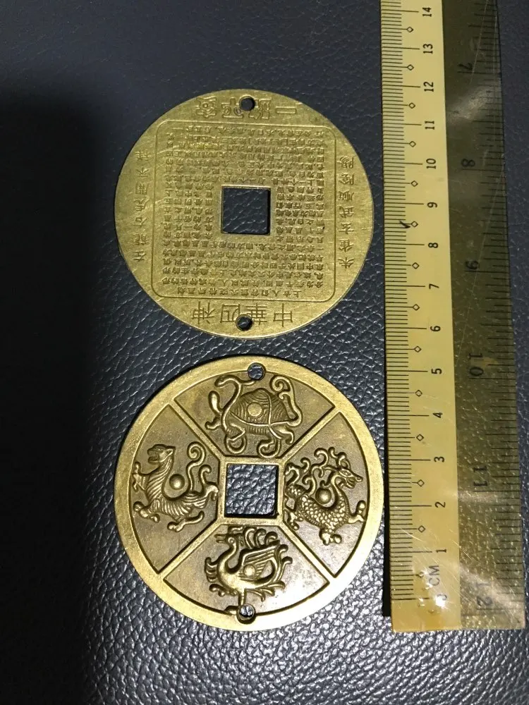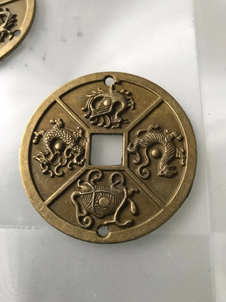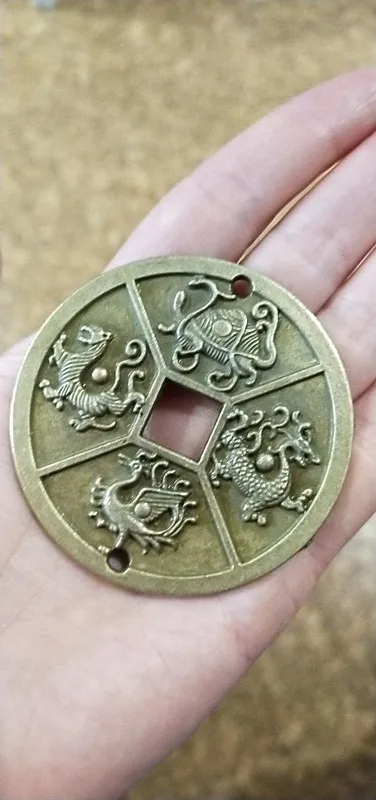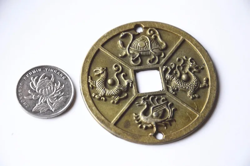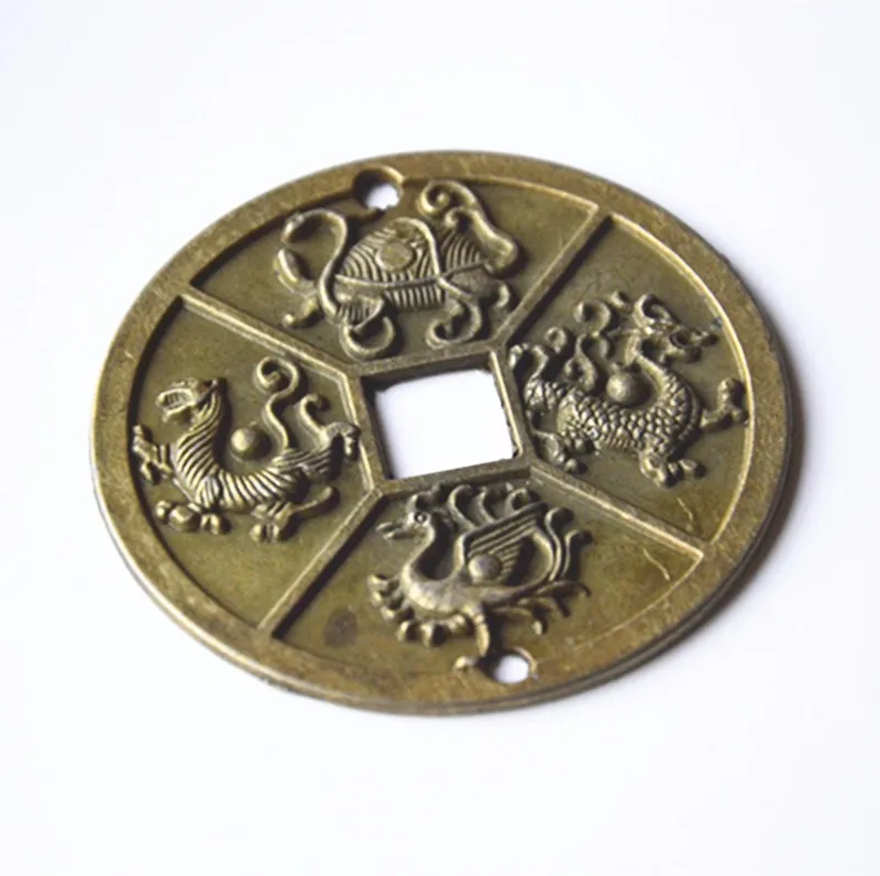 1 шт., старинная китайская монета, четыре небесных животных, мифические существа, монета фэн-шуй, латунная Монета на удачу, коллекция удачи, подарок