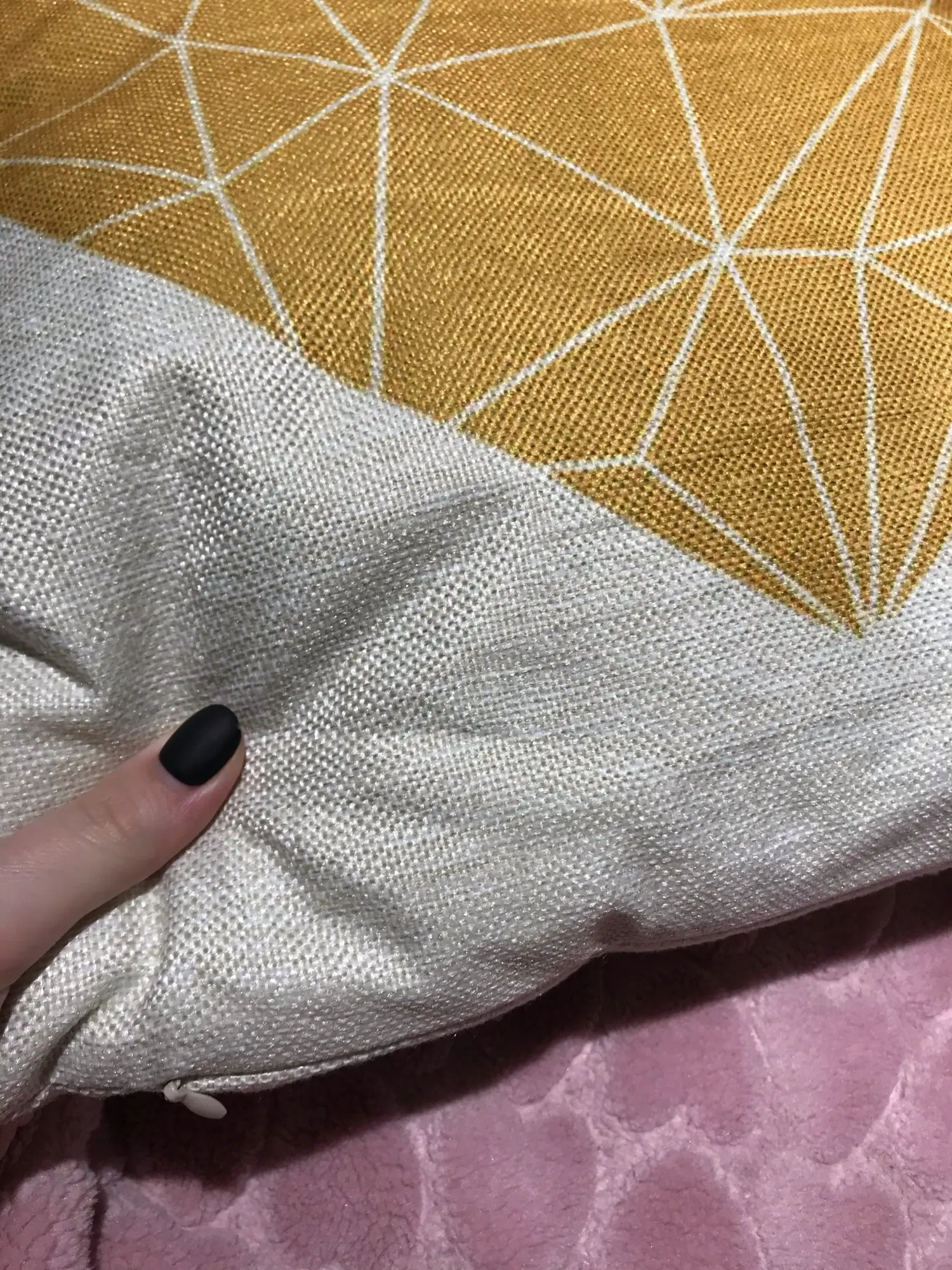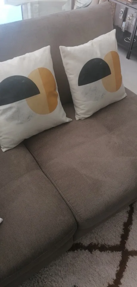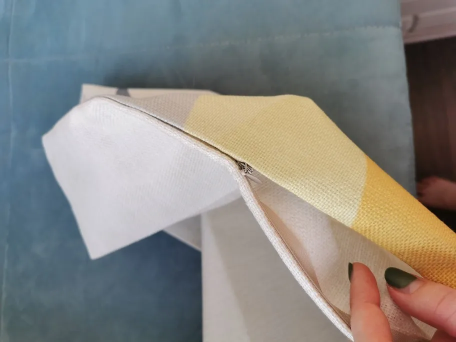 Наволочки плотные, принт качественный, яркий. На подушку 45*45 как раз. Но очень неудобно, что молния не с одного края до другого. У меня подушки плотные и крайне трудно было из туда засовывать, швы по краям от замка растянулись. И у одной наволочки ткань была вшита в замок, пришлось подрезать нитки, чтобы открыть наволочку.