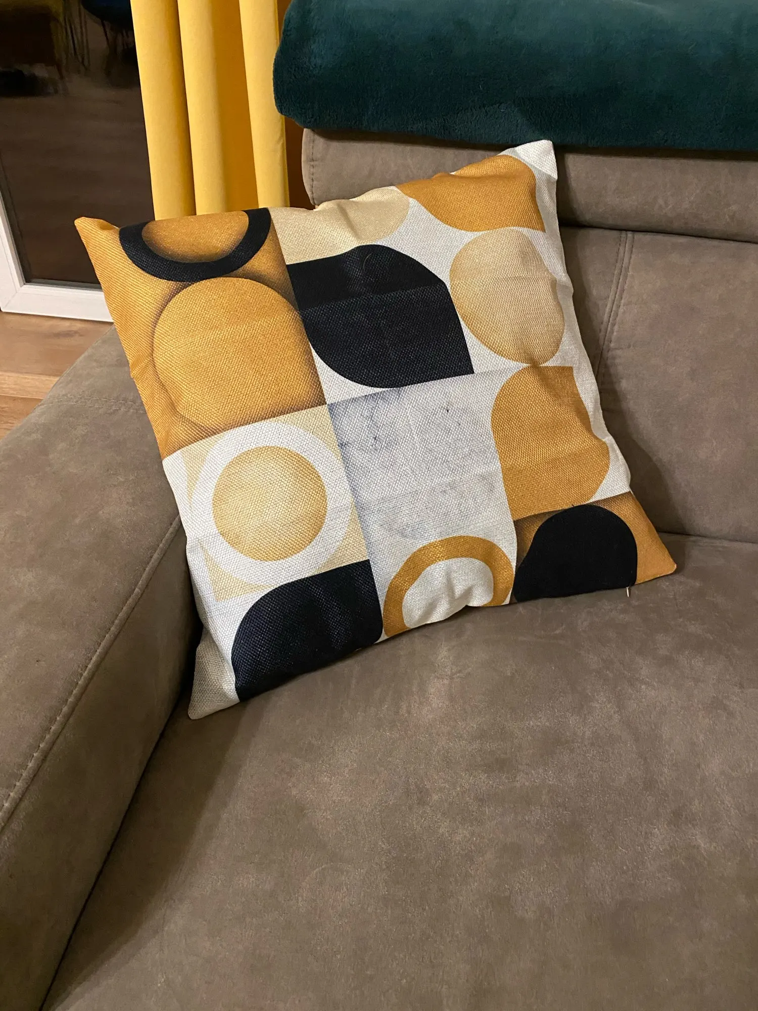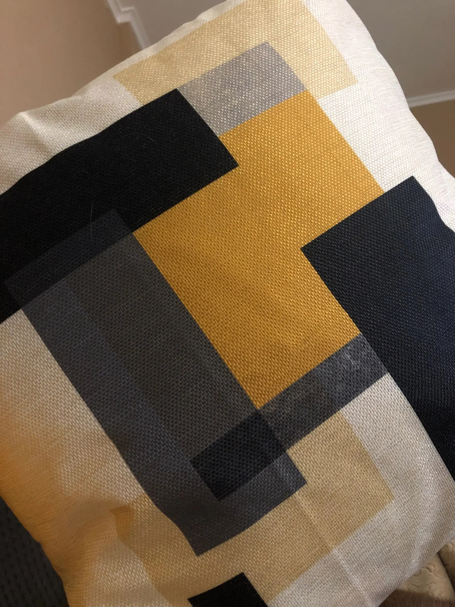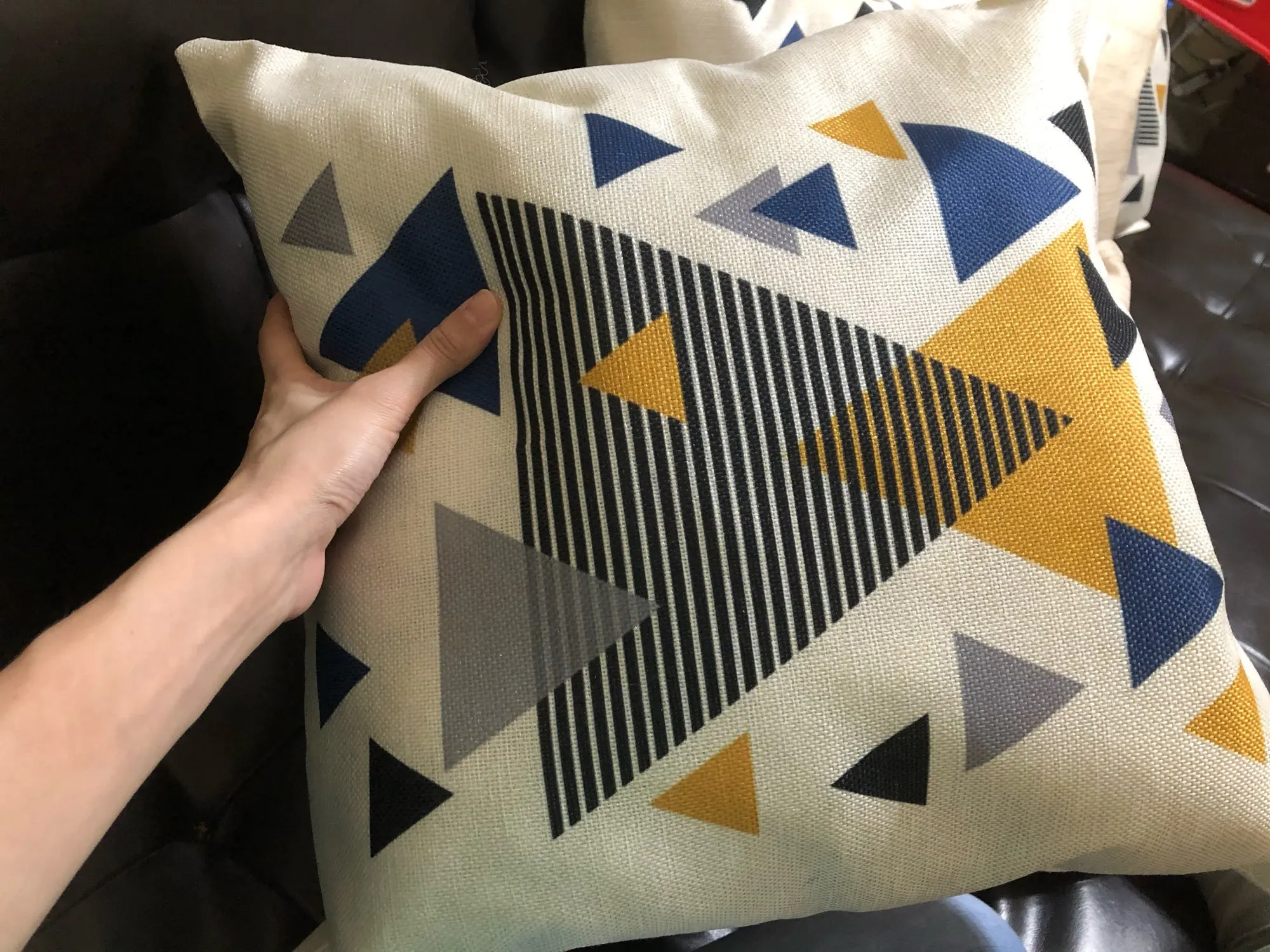Прекрасные наволочки. Материал похож плетением на лён, плотные, принт четкий, цвета сочные, основа цветом немного отдаёт в мрамор. Молнии хорошо работают. Наволочки очень оживили интерьер и чудесно сочетаются с постерами, тоже с Али.