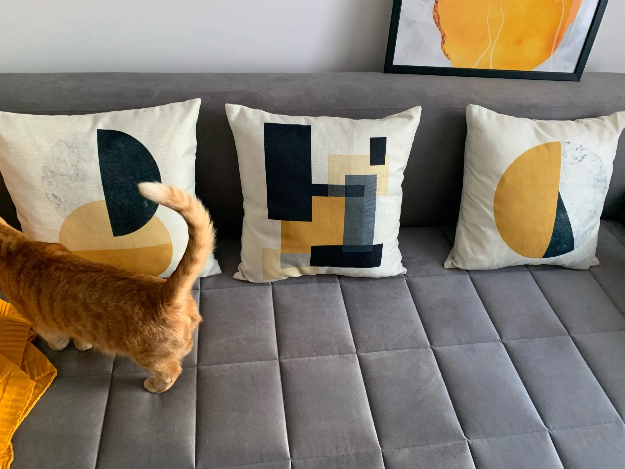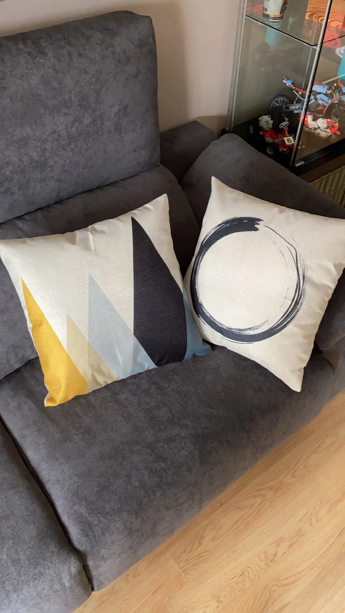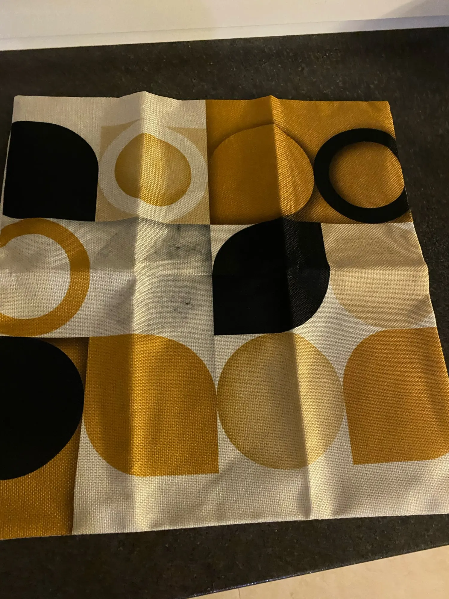 Прекрасные наволочки. Материал похож плетением на лён, плотные, принт четкий, цвета сочные, основа цветом немного отдаёт в мрамор. Молнии хорошо работают. Наволочки очень оживили интерьер и чудесно сочетаются с постерами, тоже с Али.