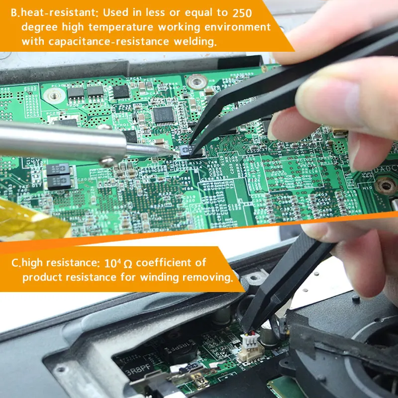 Набор антистатических пинцетов JAKEMY JM-T11 3 в 1, термостойкий плоский Изогнутый пинцет для ремонта печатных плат iPhone, Samsung, ноутбуков