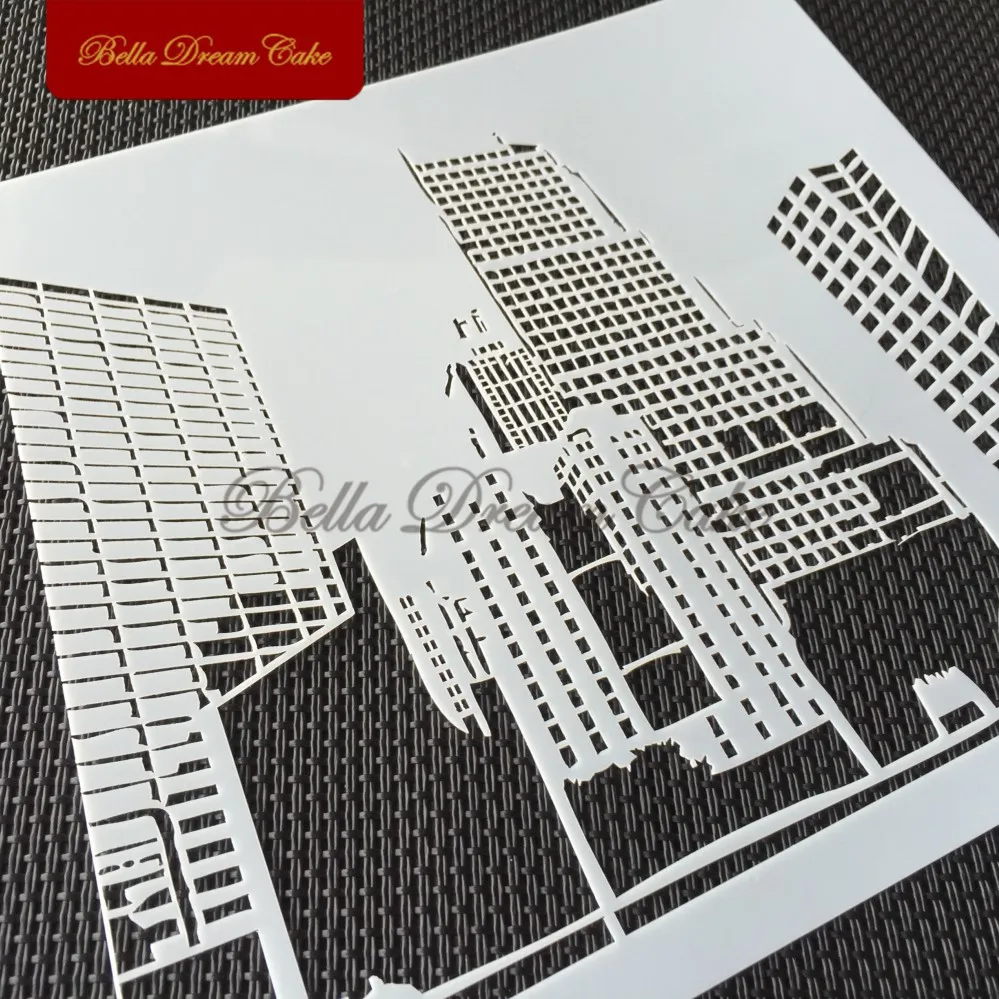 Современный трафарет для бизнес-строительства, пластиковый трафарет для торта с помадкой, настенный шаблон для украшения торта, инструменты для сахарной рукоделия ST-867-4