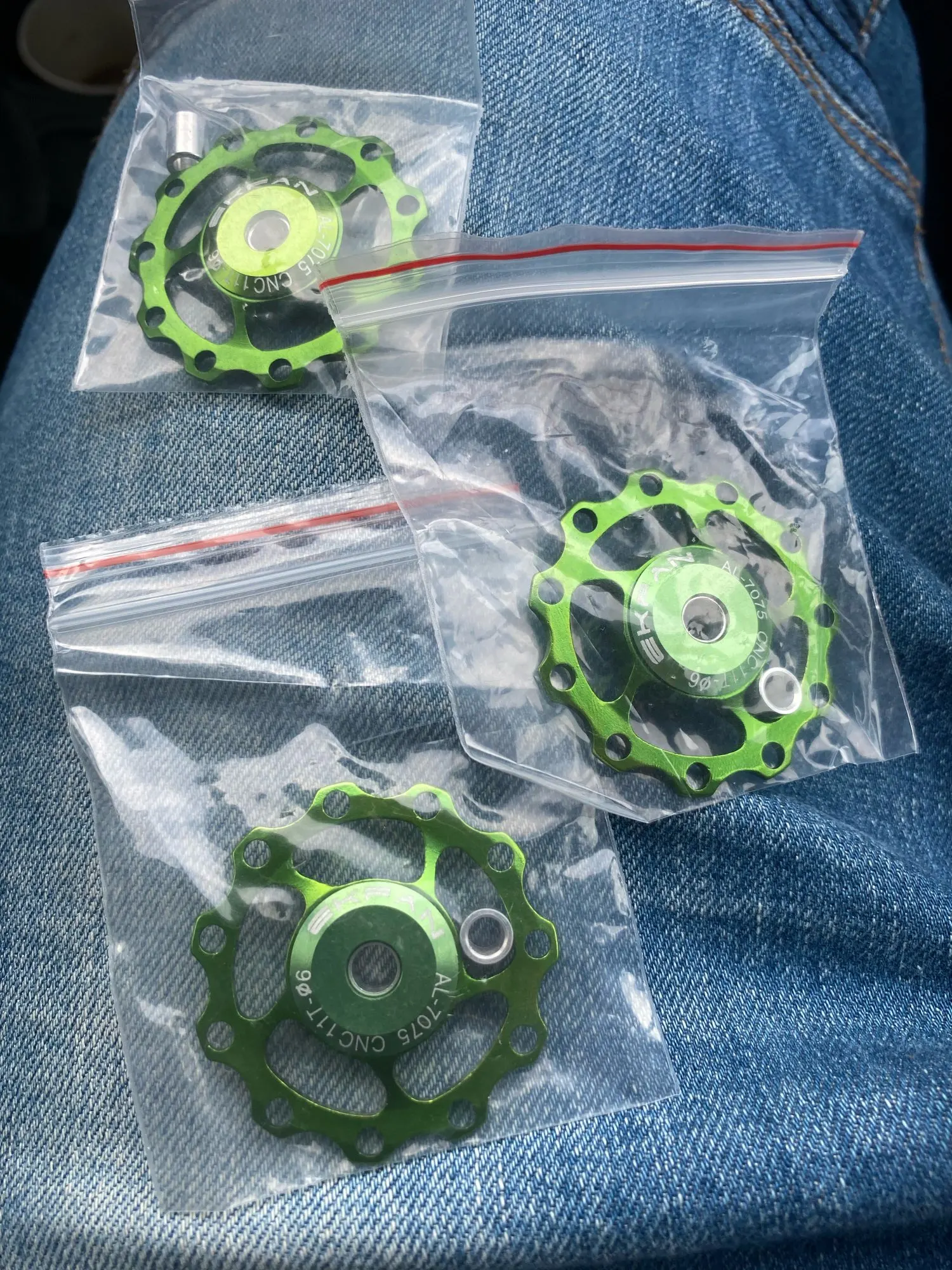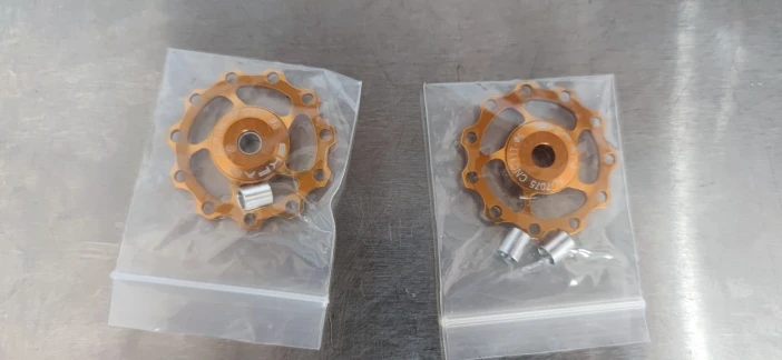 Doesn't work with my SRAM GX. Different shape of teeth and also bearing is not smooth. They look nice but belongs to a cheaper derailleur.