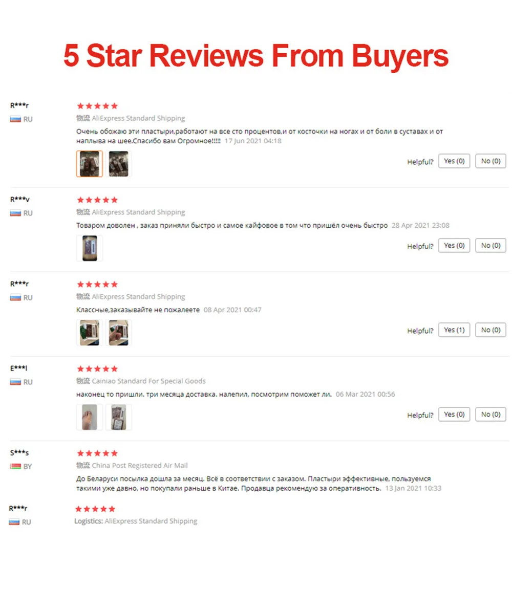 Заказ получила быстро. Спасибо продавцу. Я заказываю не в первый раз. Пластырем довольна. При воспалении косточки на ногах хорошо помогает. Снимает боль и воспаление. Рекомендую продавца и пластырь.