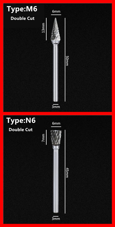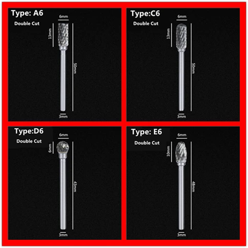 Jrealmer 5 шт. 3x6 мм двойной паз карбид вольфрама ротационные заусенцы 3 мм ограбительная головка 6 мм DIY фреза вольфрам карбид заусенцы