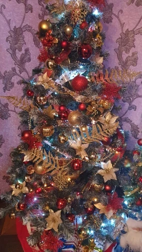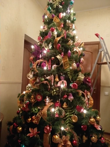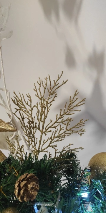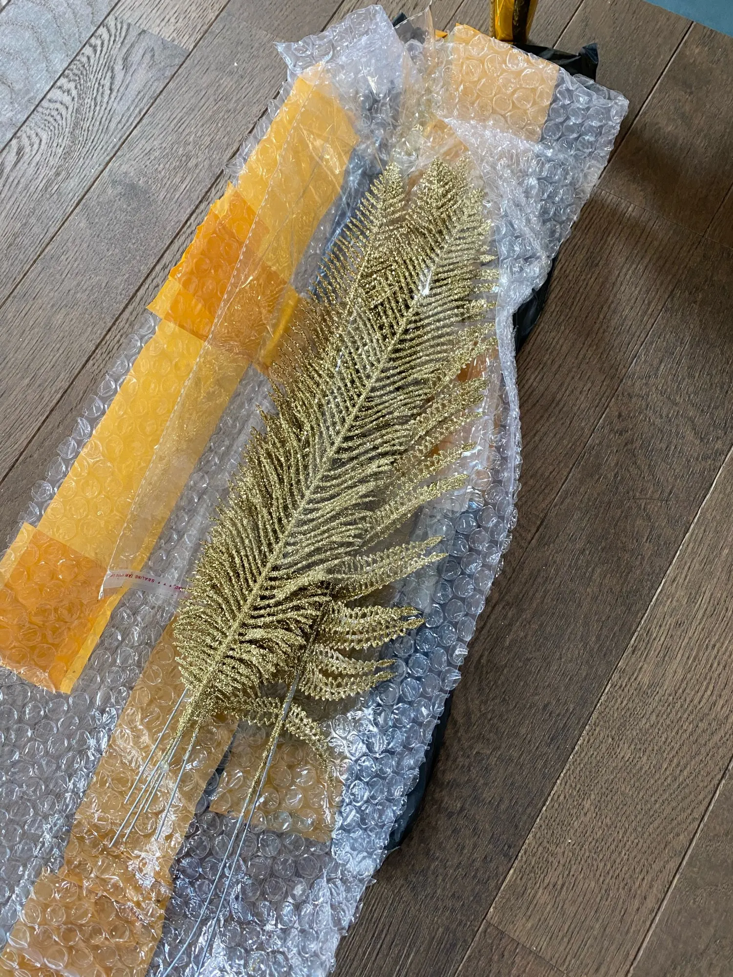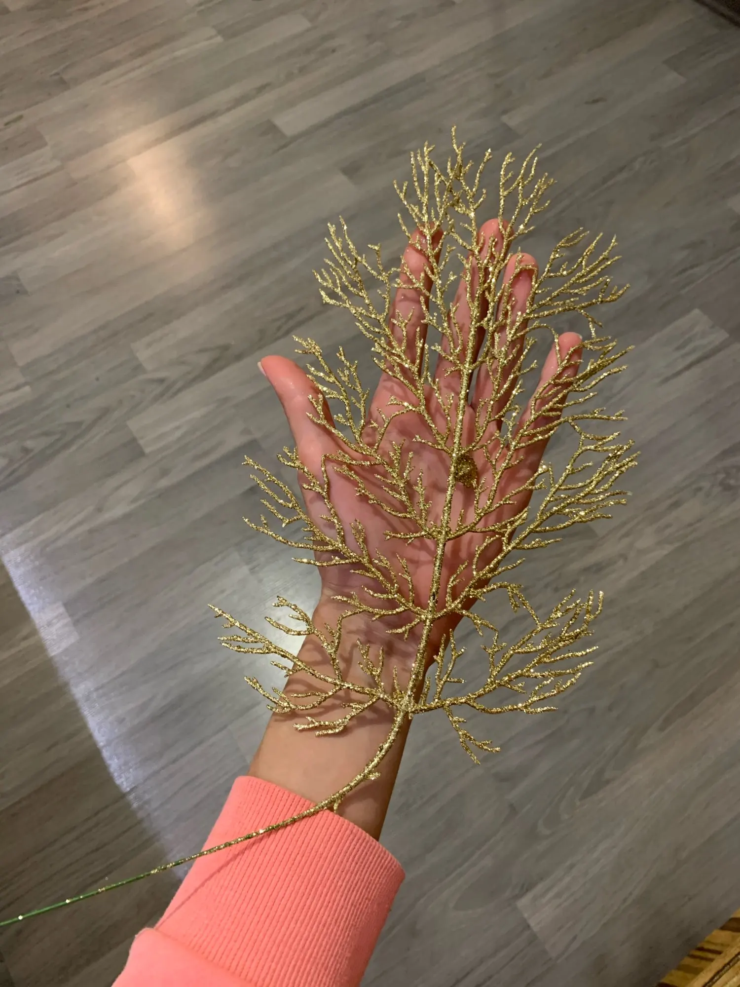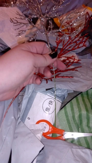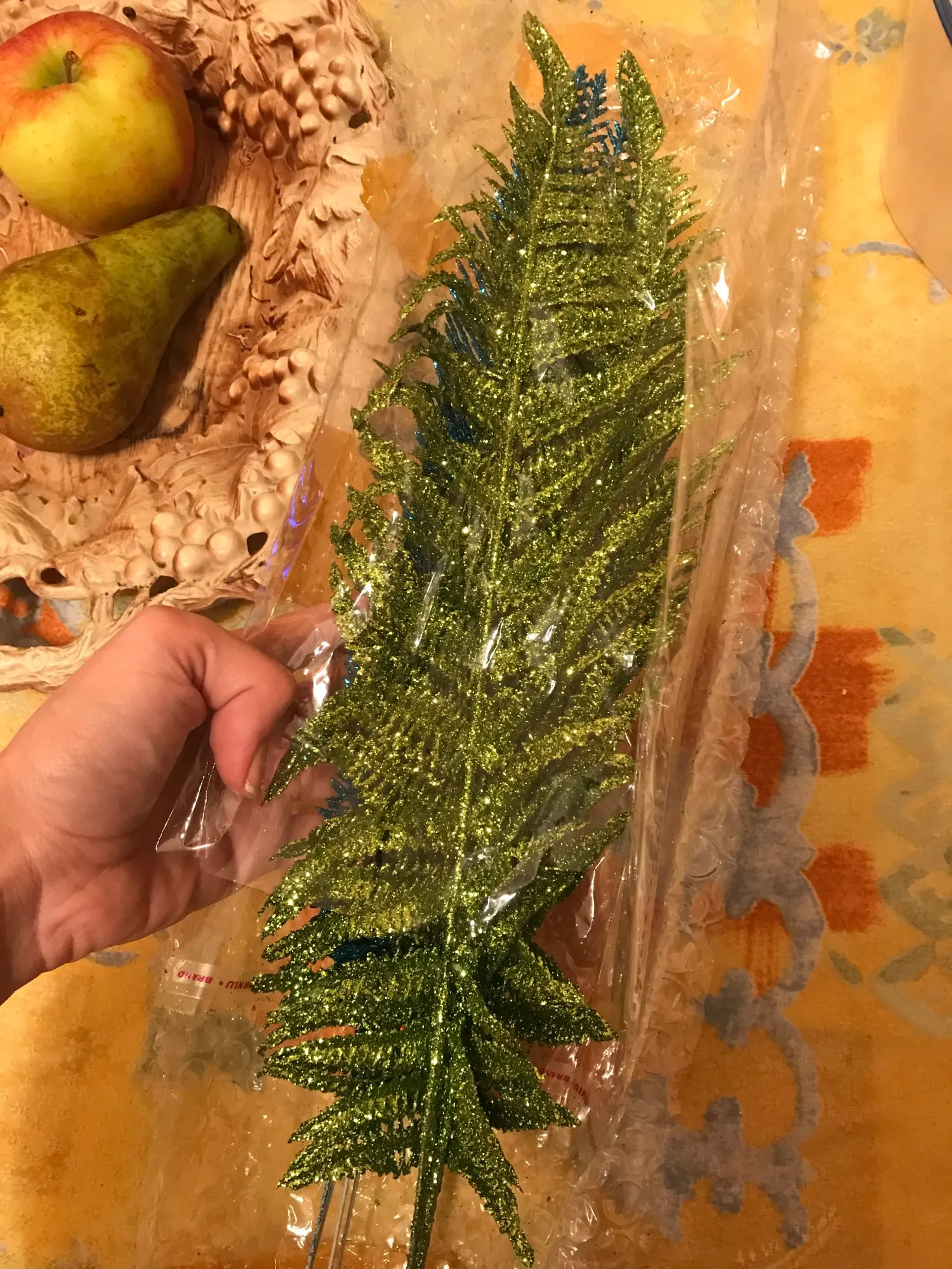ожидала большего. я знала, что оно будет сыпаться, и прокрашено может быть не идеально. но тут ещё и слипшееся. некоторые ветки покрасили не разлепив, их только разрезать теперь. и основание лысое. ставлю 4 только потому что за такую цену смотрится нормально, если не вглядываться. блестит празднично и тд. но на самое видное место не поставишь