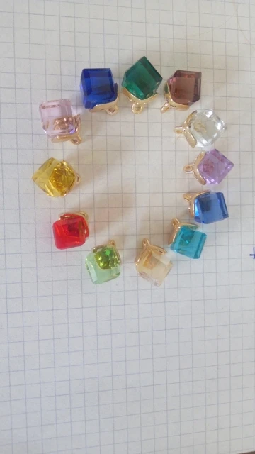 Половина подвесок плохого качества. Кубики не прилагаются к металлической части. Один куб имеет дефект.