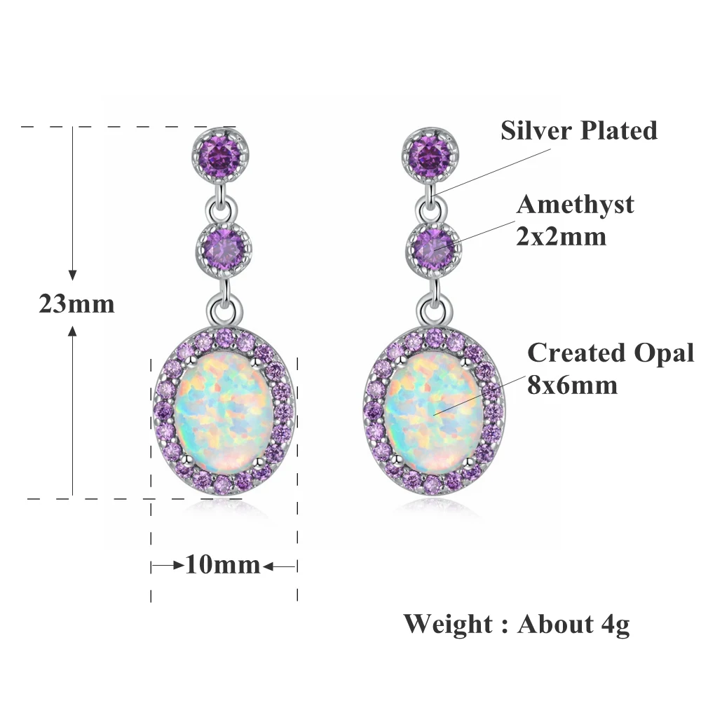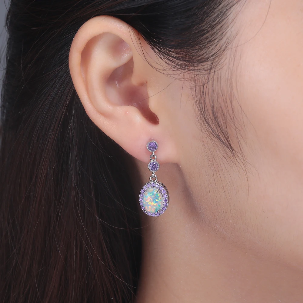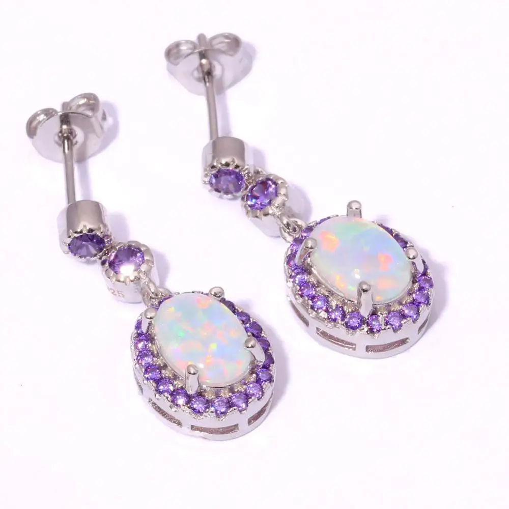 Серьги CiNily с овальным камнем и белым огненным опалом, посеребренные, фиолетовые, сиреневые, фиолетовые, циркониевые, винтажные женские ювелирные украшения вечерние