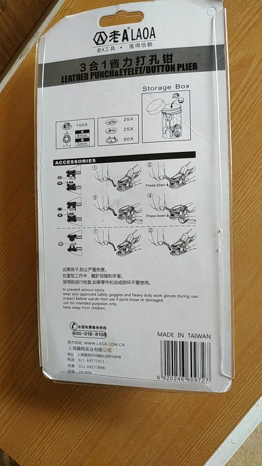 Упаковка была упакована в хорошем состоянии. Плоскогубцы просты в использовании и очень удобны в необходимости пробить что-то. Уже использовал его для пробивного отверстия в кожаном поясном ремешке. Продавец рекомендует, так как у меня сейчас более десяти инструментов LAOA.