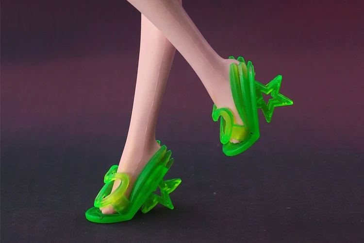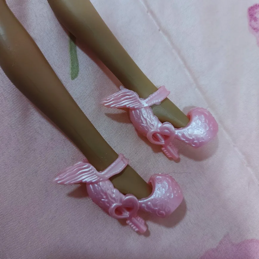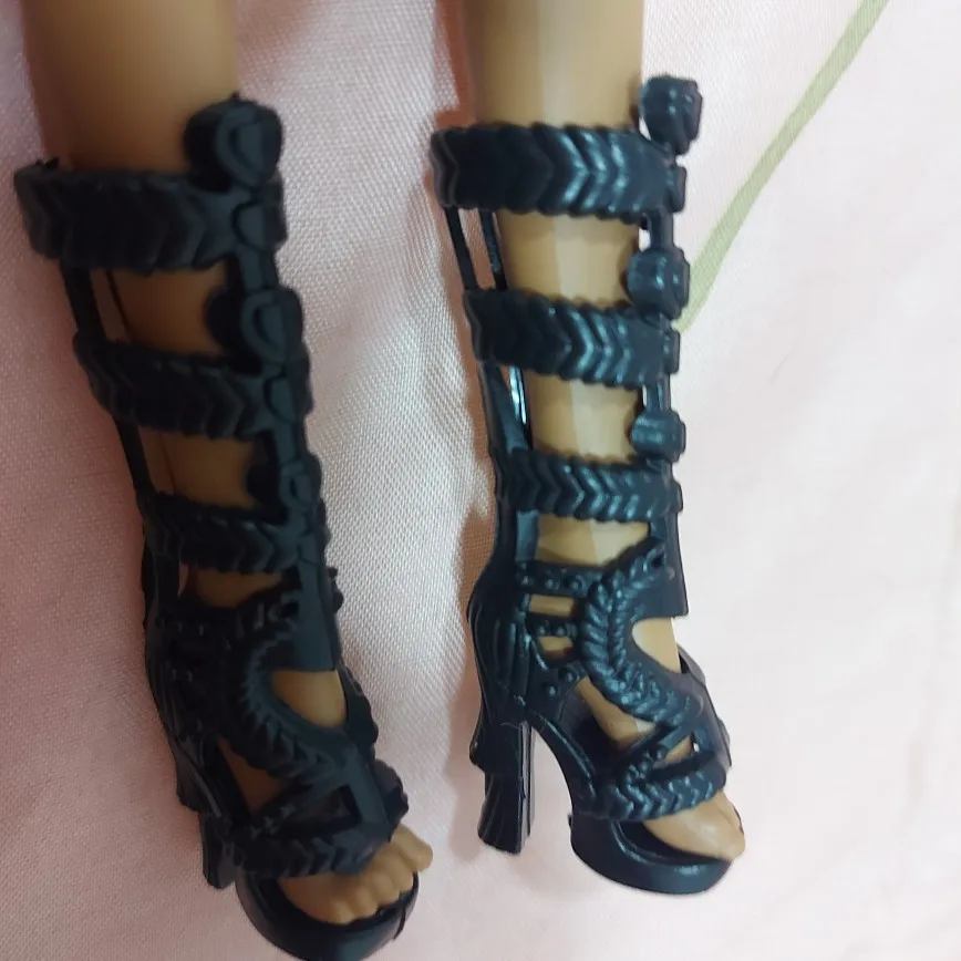 на ноге у куклы барби туфли болтаються, длинные и широкие