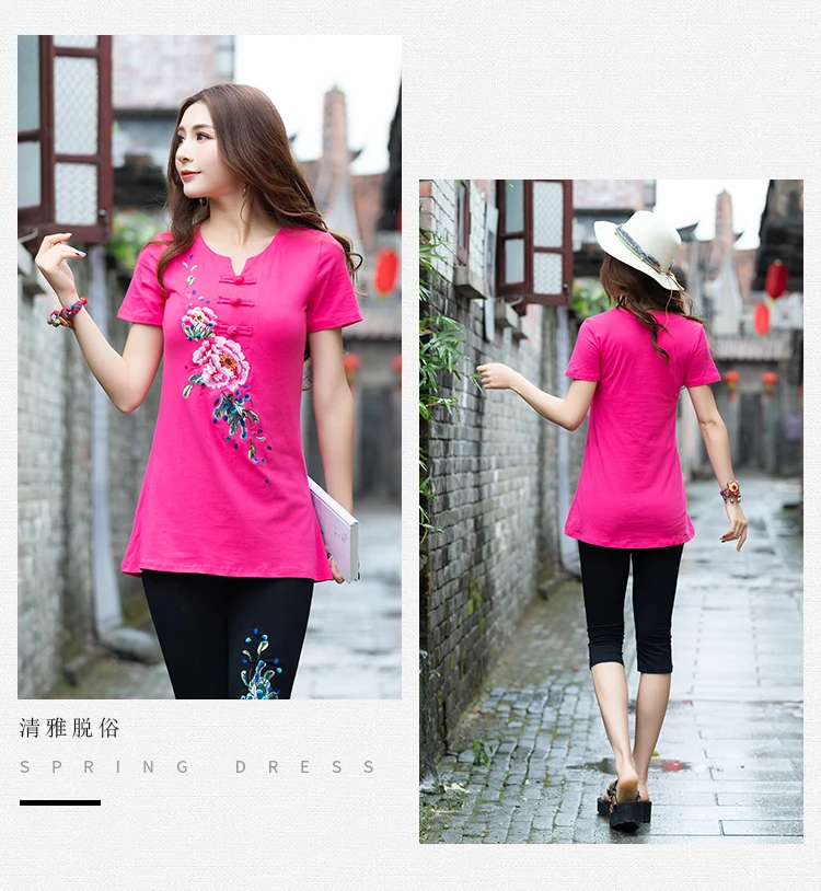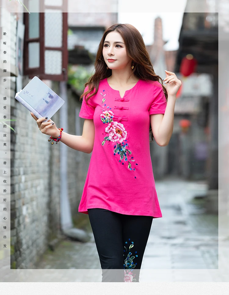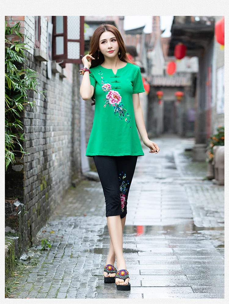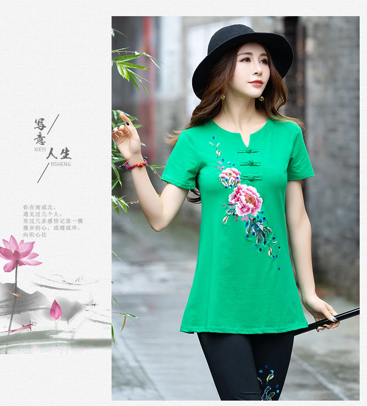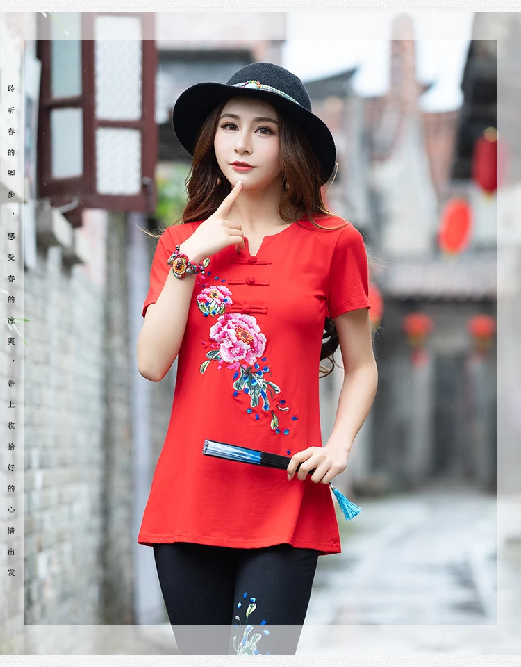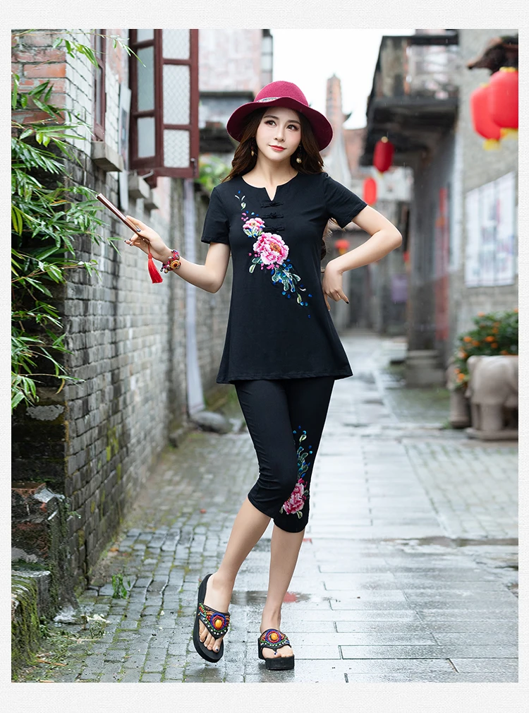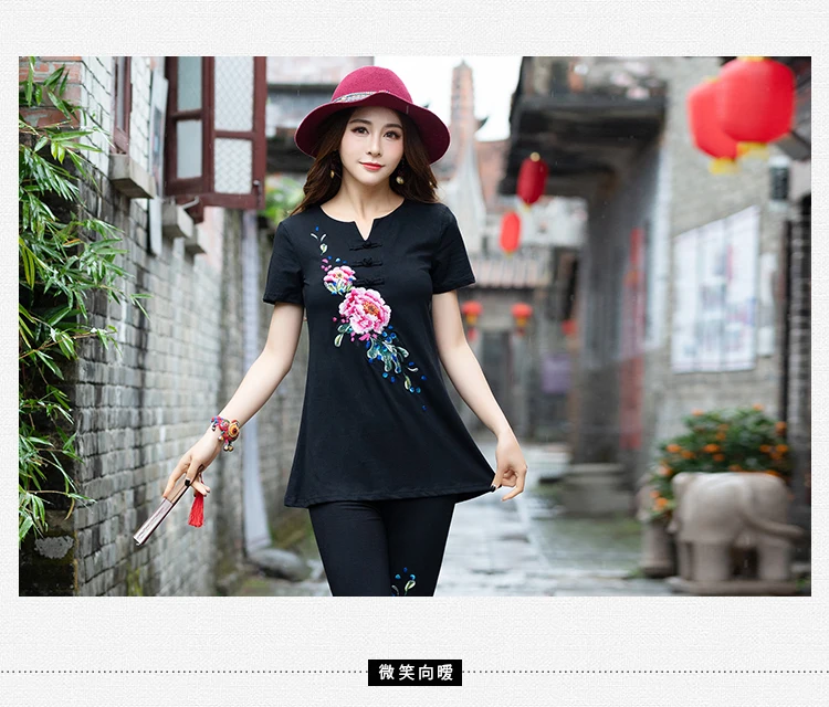 Женская этническая блузка KYQIAO, черная блузка с v-образным вырезом, коротким рукавом и цветочной вышивкой, лето 2020