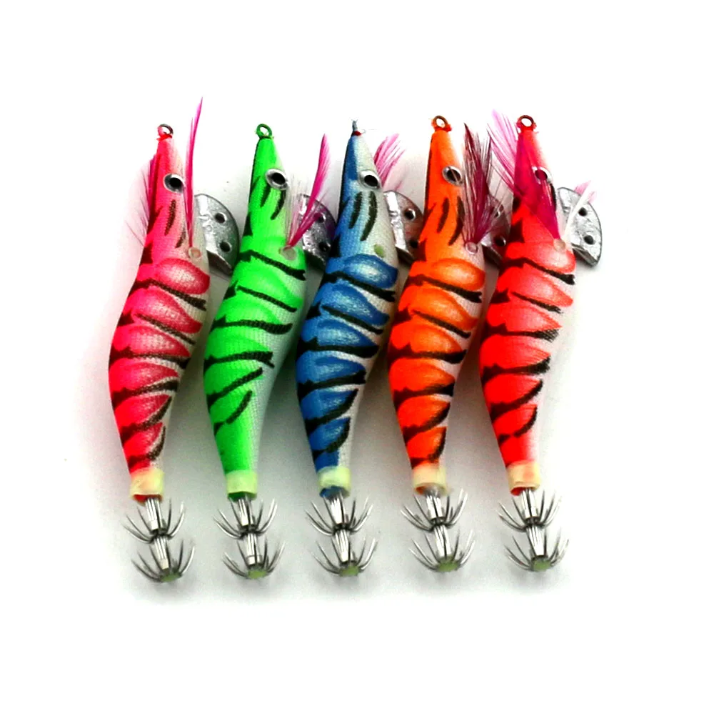 20 шт. рыболовные приманки для кальмаров, деревянные приманки для ловли креветок, 8 см, 7,4 г, 2,0 #, ночной крючок для кальмаров, рыболовные снасти, воблеры