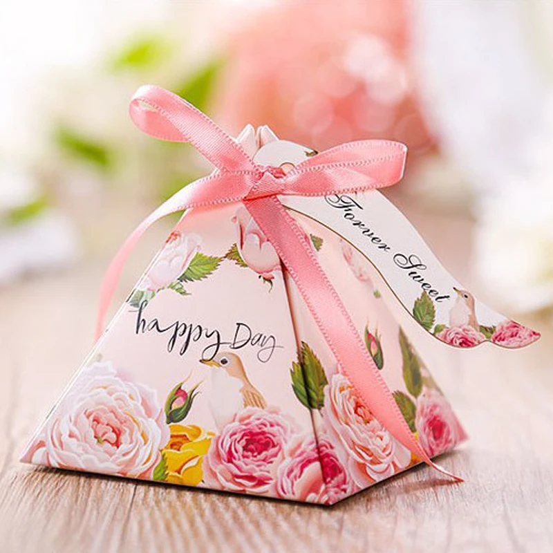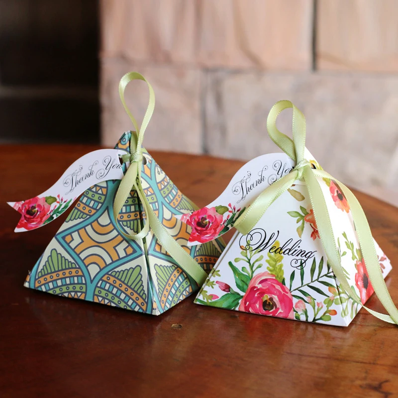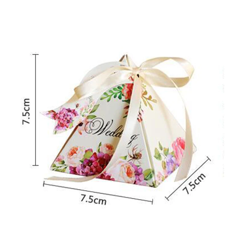 Бесплатная доставка 50 шт. креативная коробка для конфет Детские сувениры треугольная пирамида Свадебные сувениры Подарочная коробка Bomboniera товары Вечерние