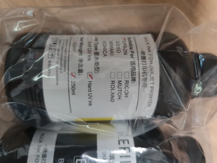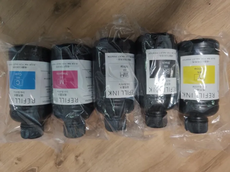 Все быстро приехало. Из РОссии кстати. Никаких лишних вомросов со стороны таможни. Бутылочек 5 и одна полиэтиленовая штука с воздухом внутри типа мешка запаяная но прям плотненько все в упакрвке. Все целое. Белый прсвда осталось немного но мне хватит все супер. СПАСИБО. А по краске - краска как краска, печатаешь как обычно пахнет грибочками) машина на базе Epson L1800 портпльрого типа. Гуд. Кстати курьер СДЭКа принес прям в офис - хоть на почте не стоять очередь!