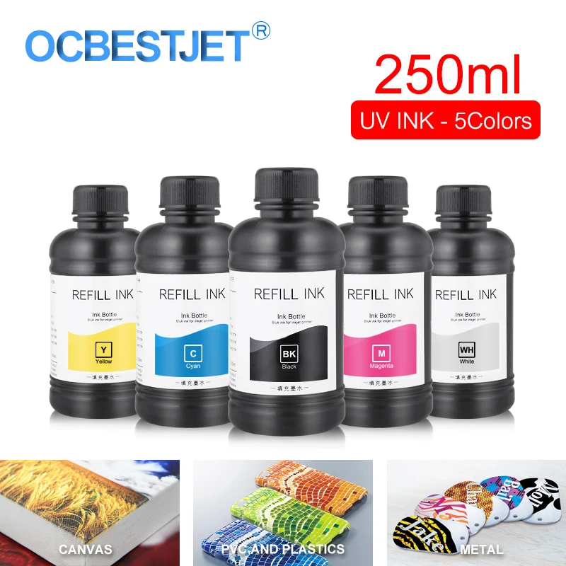 250 мл 5 бутылокнабор светодиодных УФ-чернил для DX4 DX5 DX6 DX7 печатающая головка для Epson 1390 R1800 R1900 4800 4880 7880 9880 УФ планшетного принтера