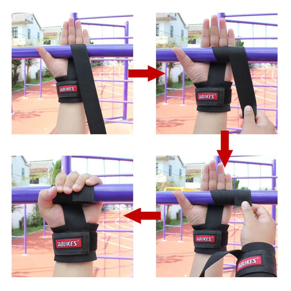 1 пара нескользящих утолщенных перчаток AOLIKES для тренировок в тренажерном зале для тяжелой атлетики с рукояткой и поддержкой запястья