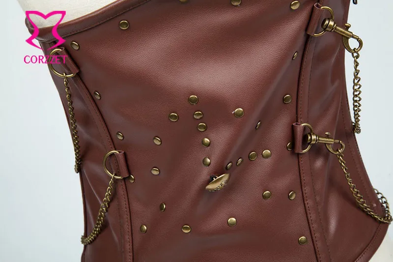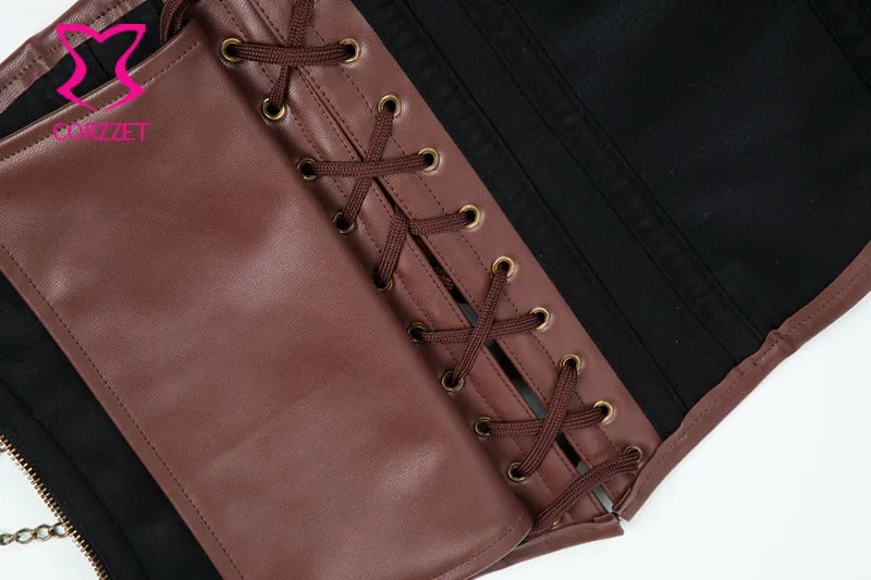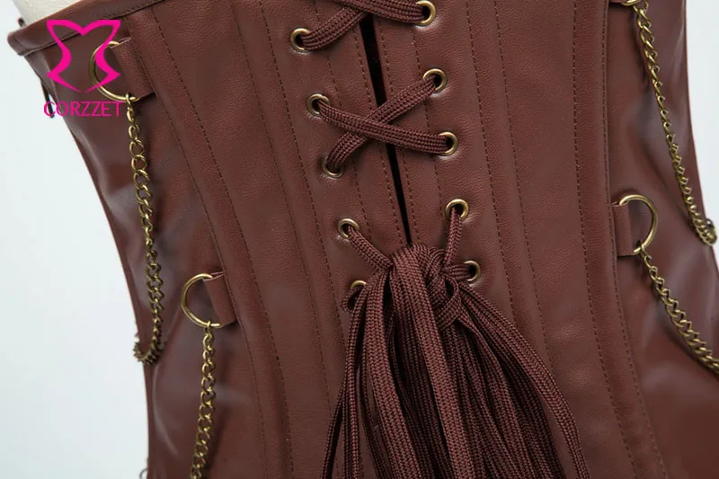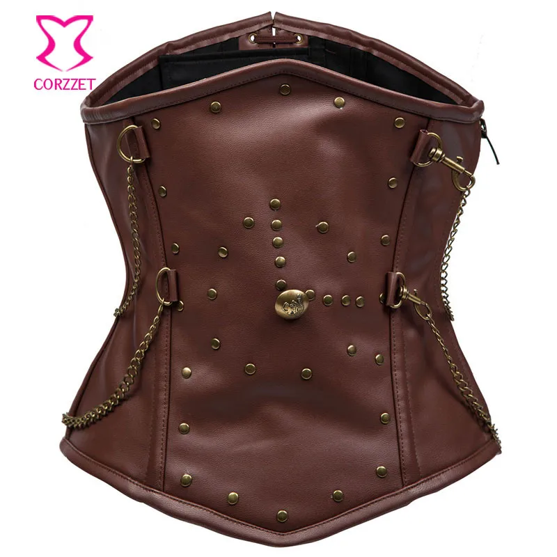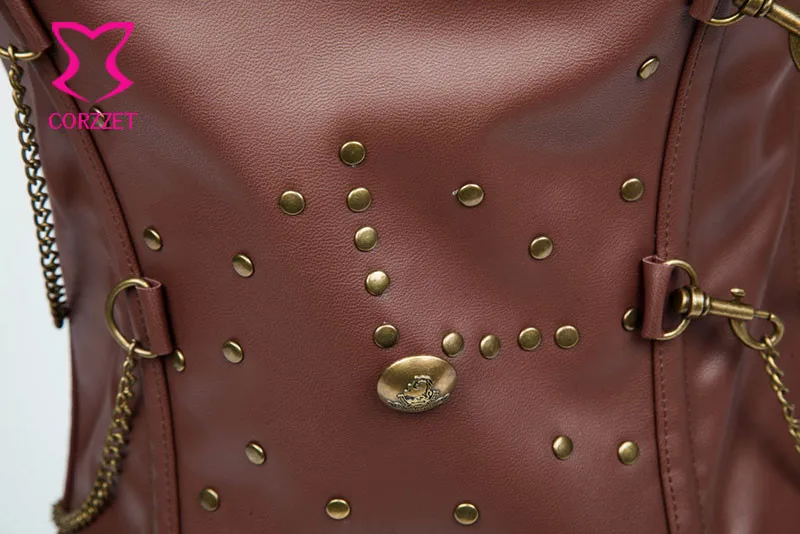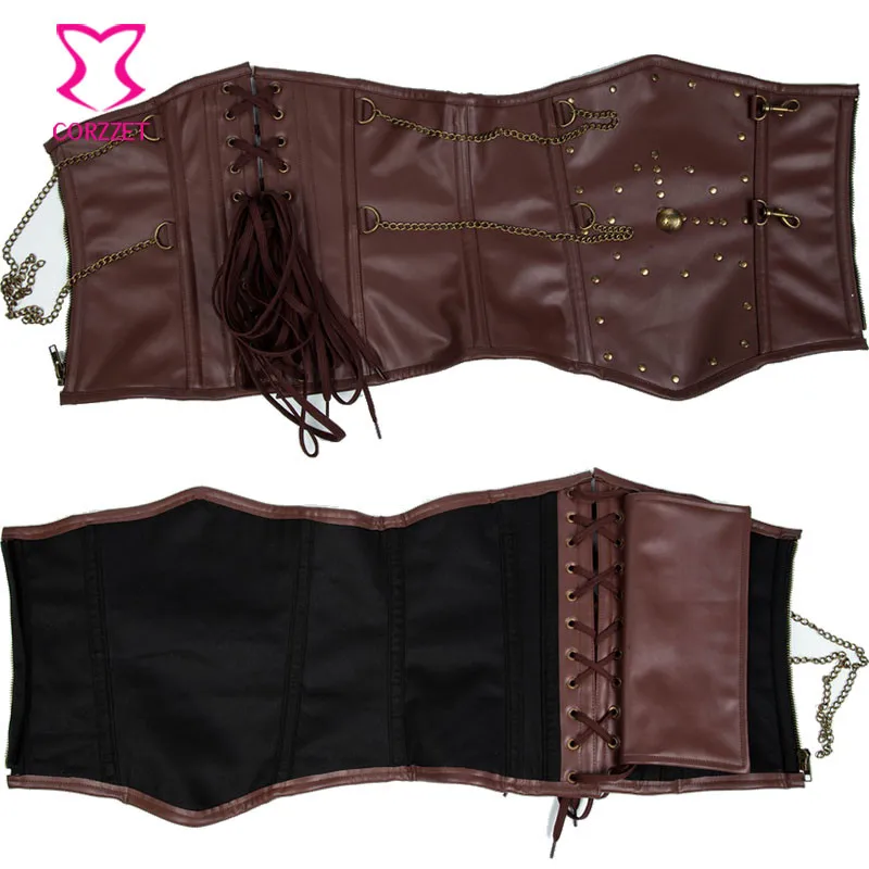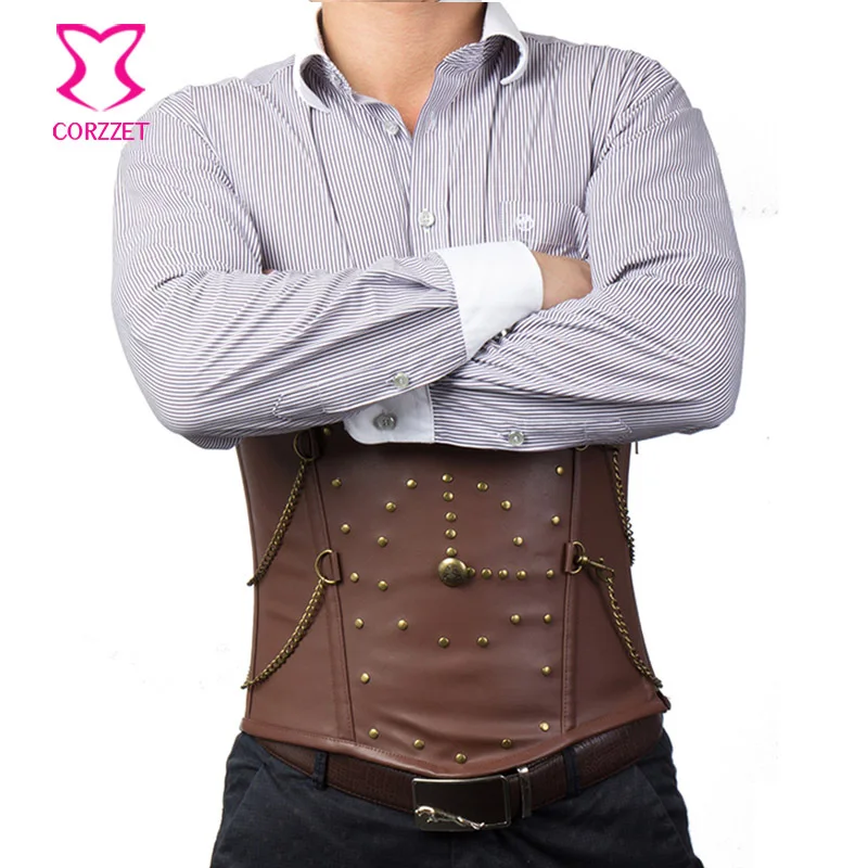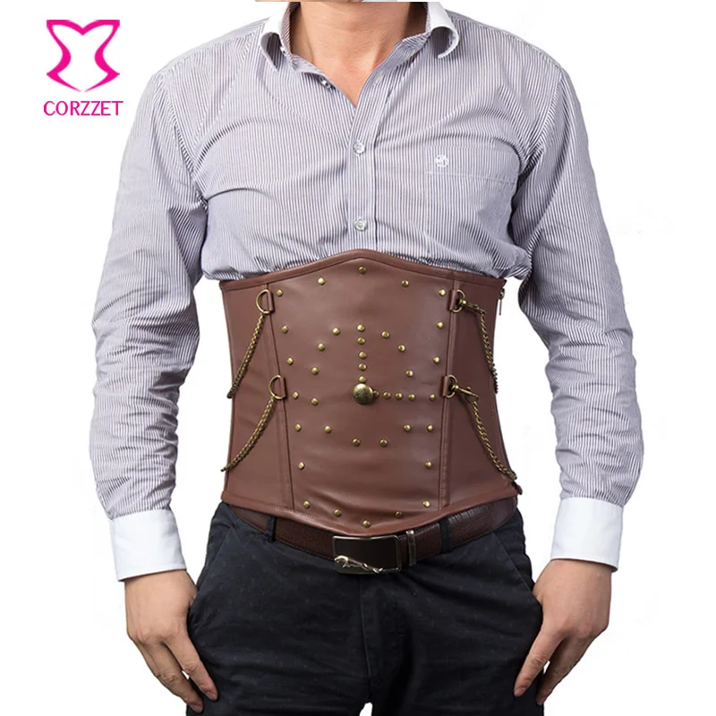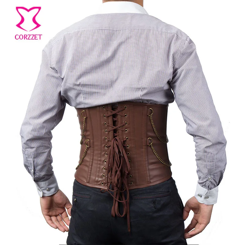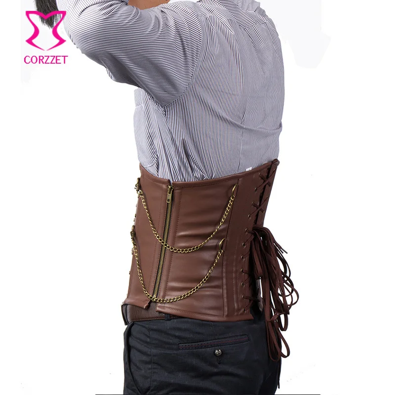 Корсет мужской из искусственной кожи, Коричневый корсет в готическом стиле, одежда в стиле стимпанк, пояс со стальными косточками для похудения