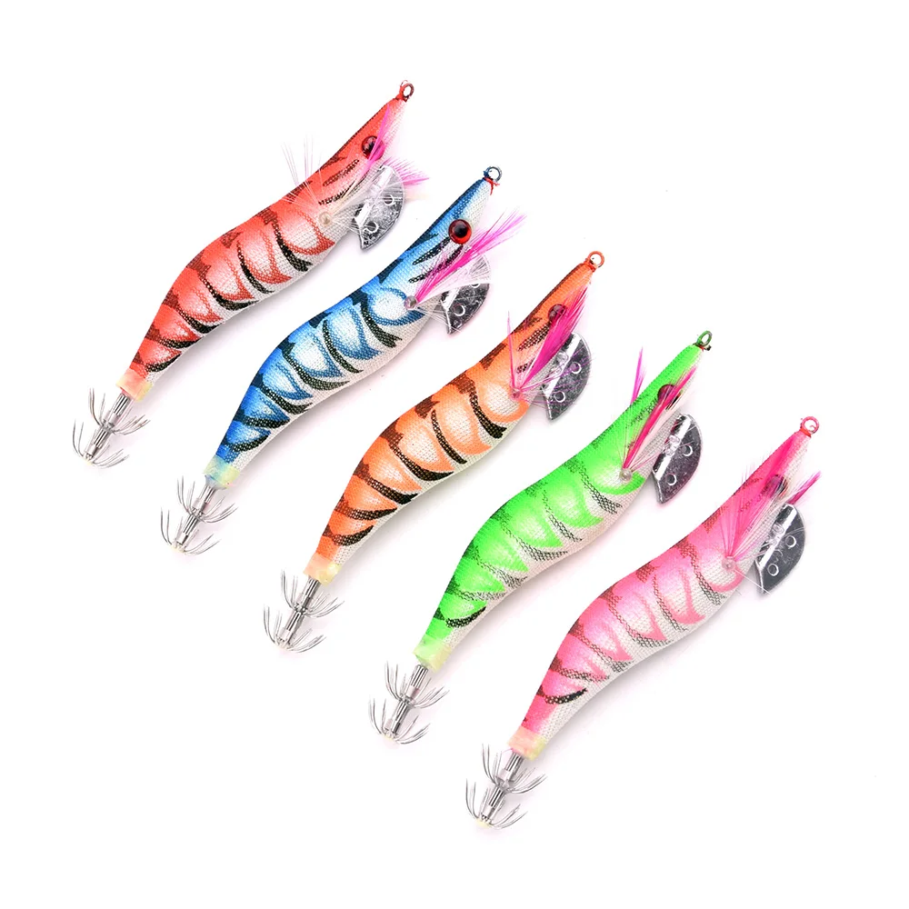 20 шт. рыболовные приманки для кальмаров, деревянные приманки для ловли креветок, 8 см, 7,4 г, 2,0 #, ночной крючок для кальмаров, рыболовные снасти, воблеры