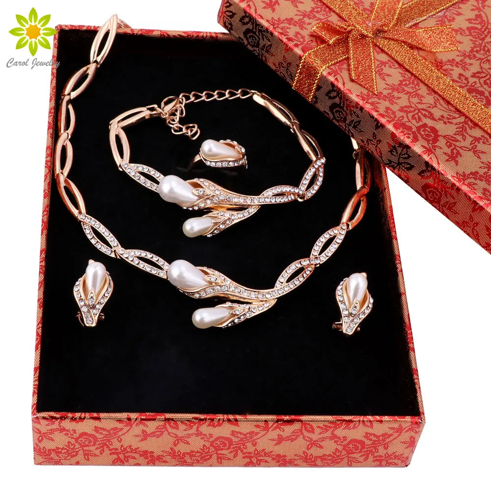 Изящные женские Ювелирные наборы с искусственным жемчугом и кристаллами, эффектные колье, комплект с ожерельем, аксессуары для свадебной вечеринки + подарочные коробки
