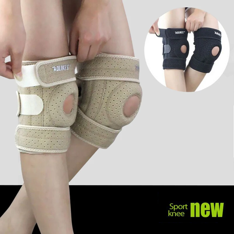 2016 Дышащий наколенники с 4 Пружины ГЕЛЬ Поддержка Фиксатор Сустава Защита Регулируемая Коленной ВелоспортБег Колено Протектор Joelheira наколенники наколенники для спорта