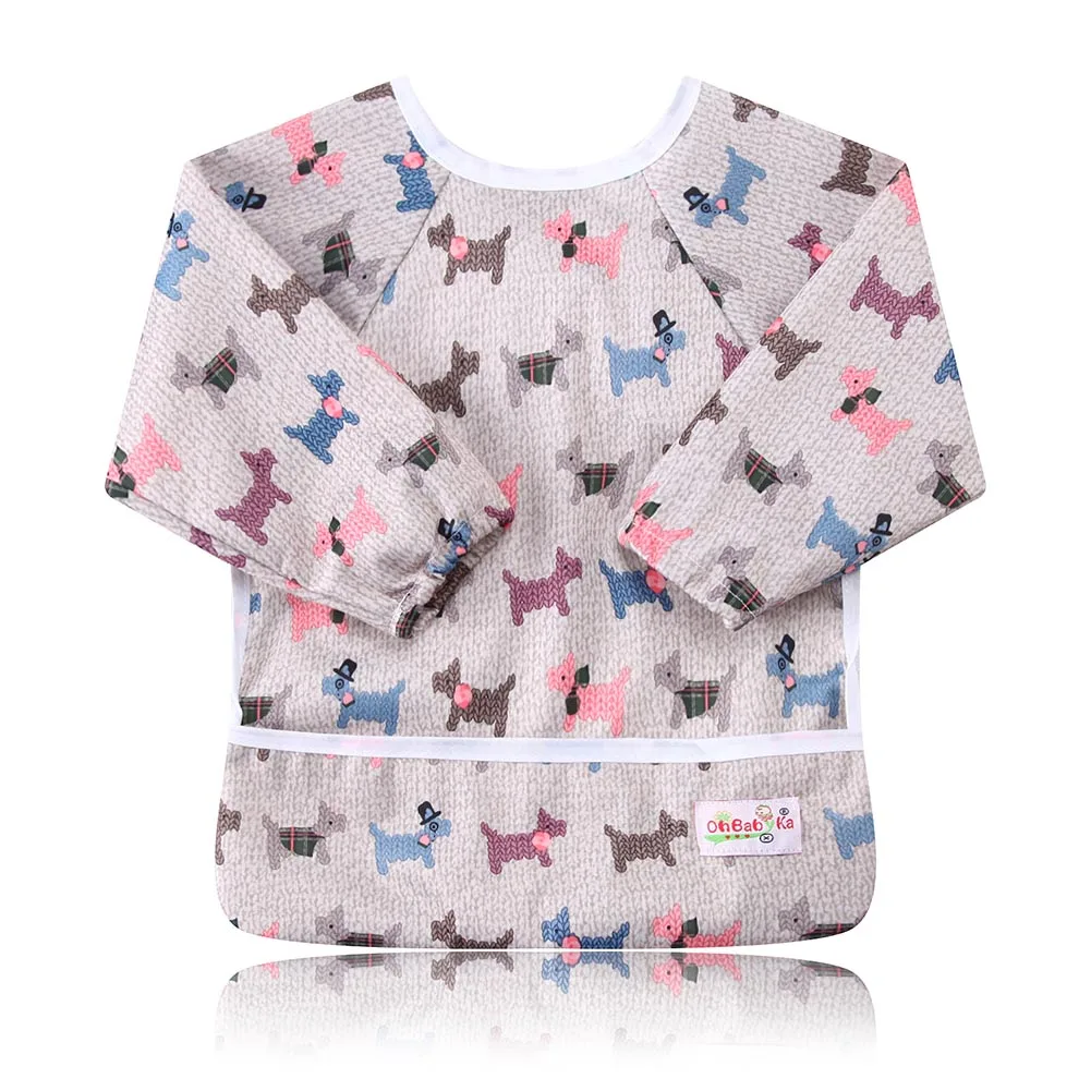 Нагрудник для кормления Ohbabyka, водонепроницаемый милый нагрудник с длинным рукавом, непромокаемый, для самостоятельного кормления и еды