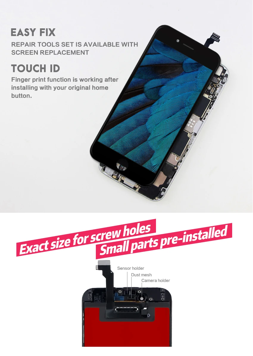 Всё отлично! Работает отлично, цвета оригинала. Нужно со старого стекла переставить фронтальную камеру, ушной динамик, Touch ID и металлический экран и, вуаля - всё круто. В комплекте инструмент, прозрачный чехол и защитное стекло. Рекомендую продавца и товар. Но! Если нет опыта замены - лучше найдите полную сборку! Мелкие детали и менять не очень удобно.