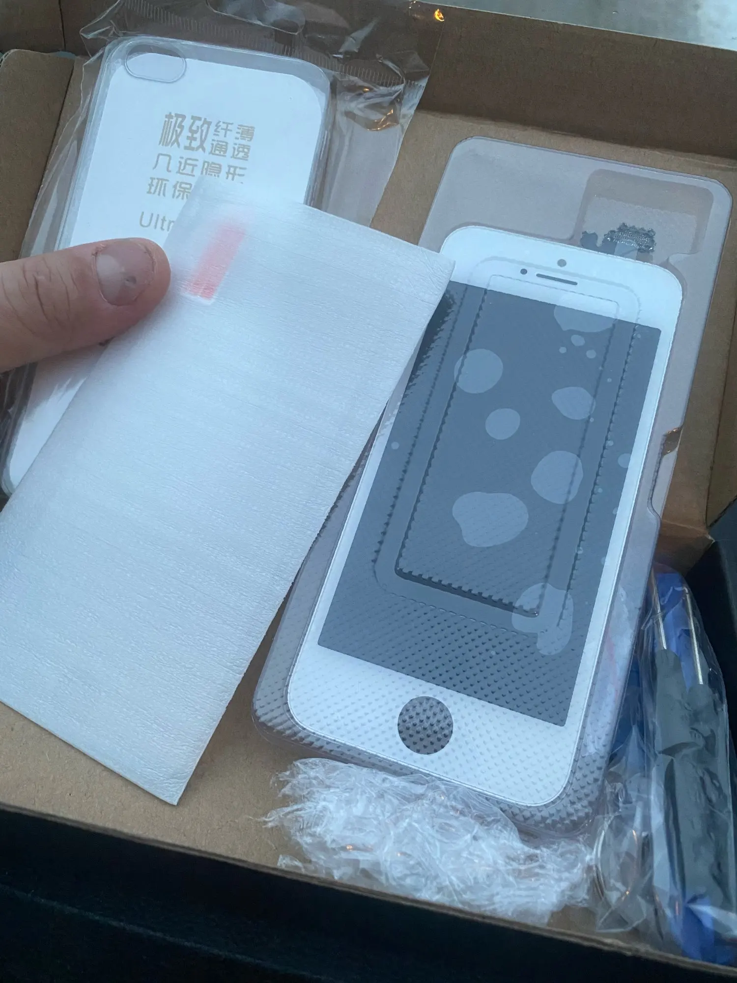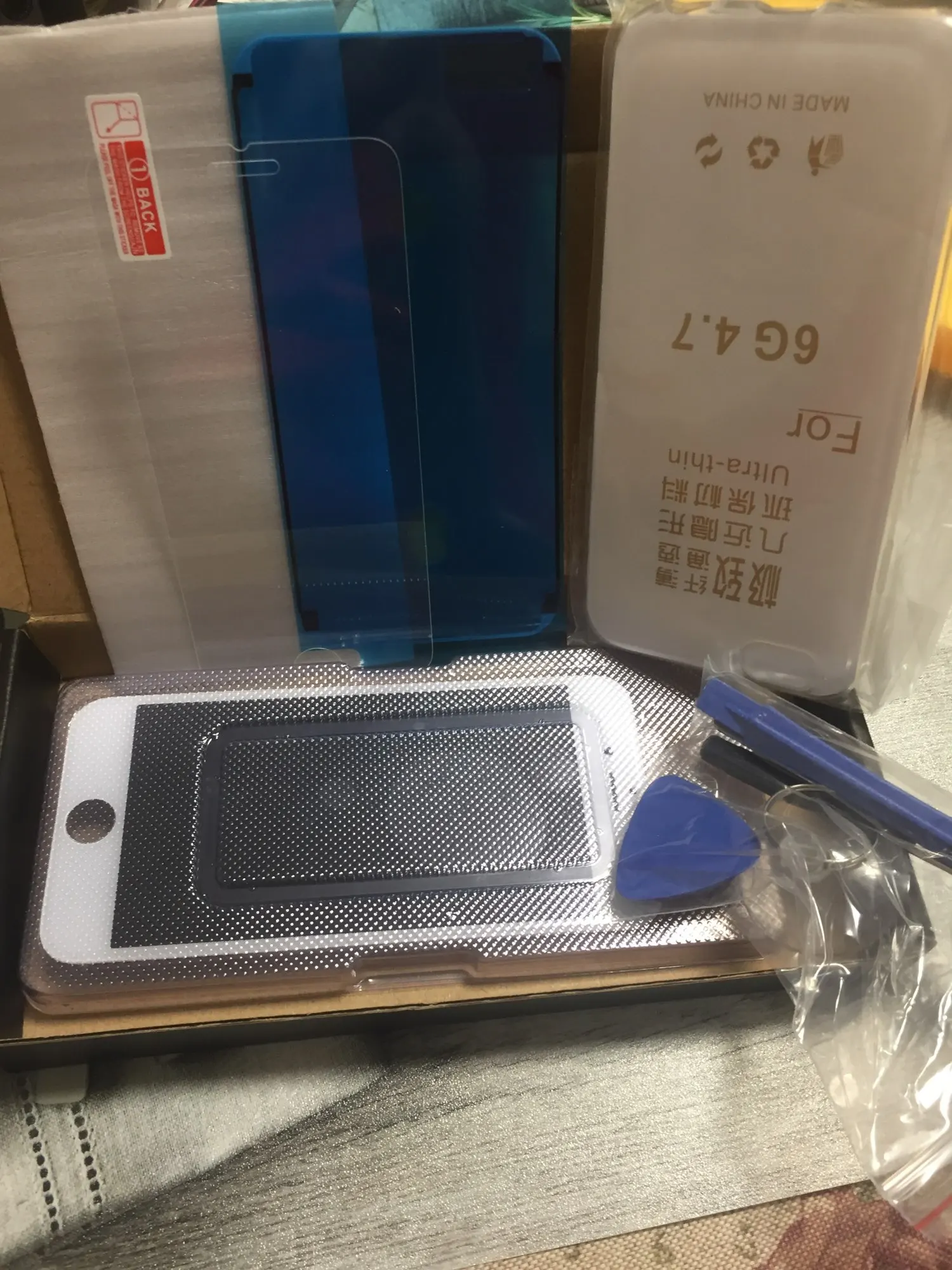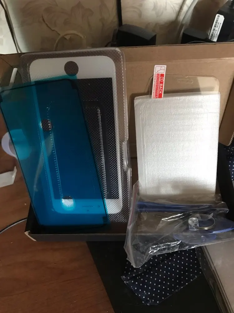 Дисплей хороший, вместе с дисплейным модулем продавец отправил стекло, чехол и набор отверточек. Сразу предупрежу, что отвертки в комплекте одноразовые, не начинайте замену без нормального инструмента. На последних трёх болтах, отвёртка Y 0.6 сломалась, пришлось бежать в магазин за нормальным набором. Ну, и конечно, Эпл в своем стиле, куча нестандартных болтов и неработающая автояркость без прошивки после замены. Любишь айфоны - страдай)