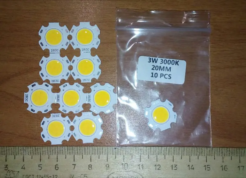 Доставка один месяц,светодиоды не плохие,заказал на 3Вт но они не на 12 вольт,тёплого свечения лучше подключать максимум на 9,5 вольт а натуральный белый 10 вольт и обязательно с радиатором,так они дольше прослужат,один светодиод положили лишний,за что спасибо продавцу,рекомендую к заказу.